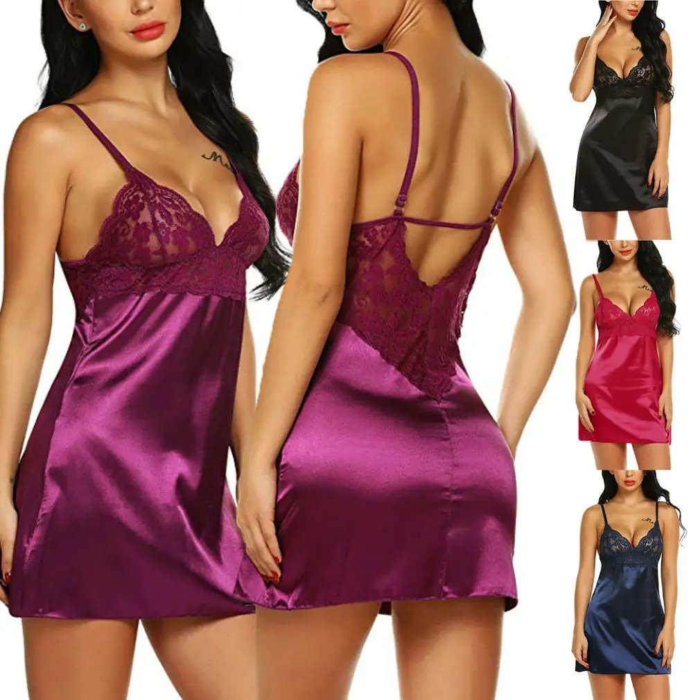 Кружевное сексуальное нижнее белье, женская ночная рубашка на бретельках, мини-платье, пижама без рукавов, летняя одежда для сна, S-XL, Экзотическая одежда