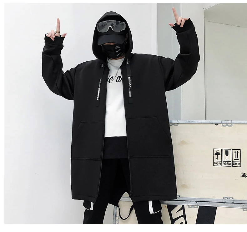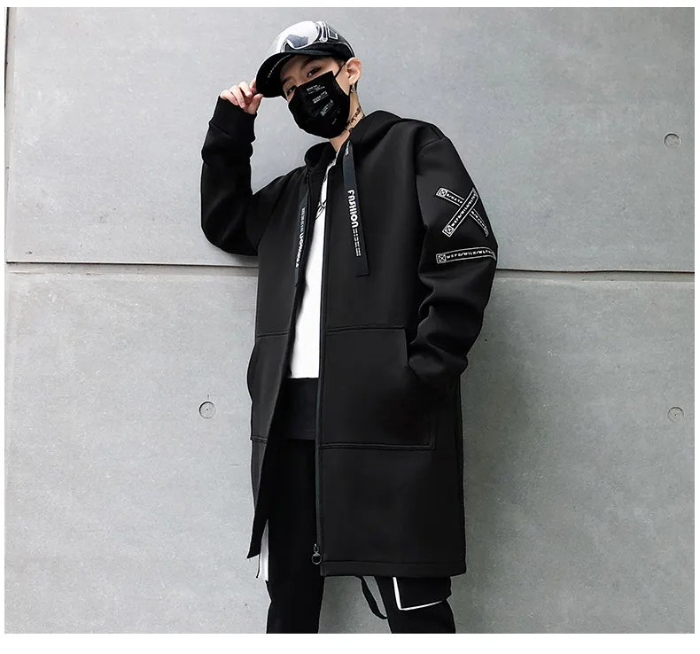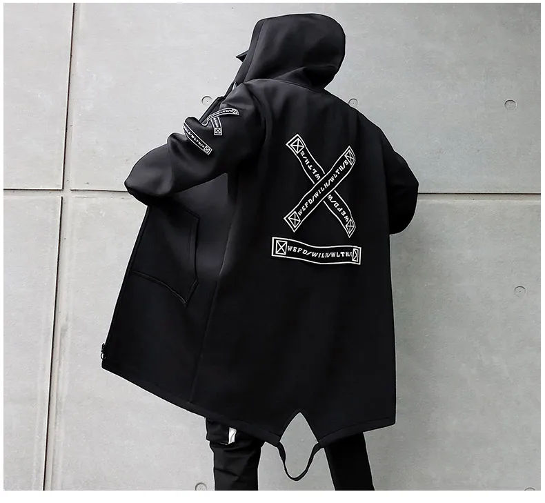 Мужской Тренч, модная уличная одежда с принтом, ветровка с капюшоном, облегающее пальто, верхняя одежда