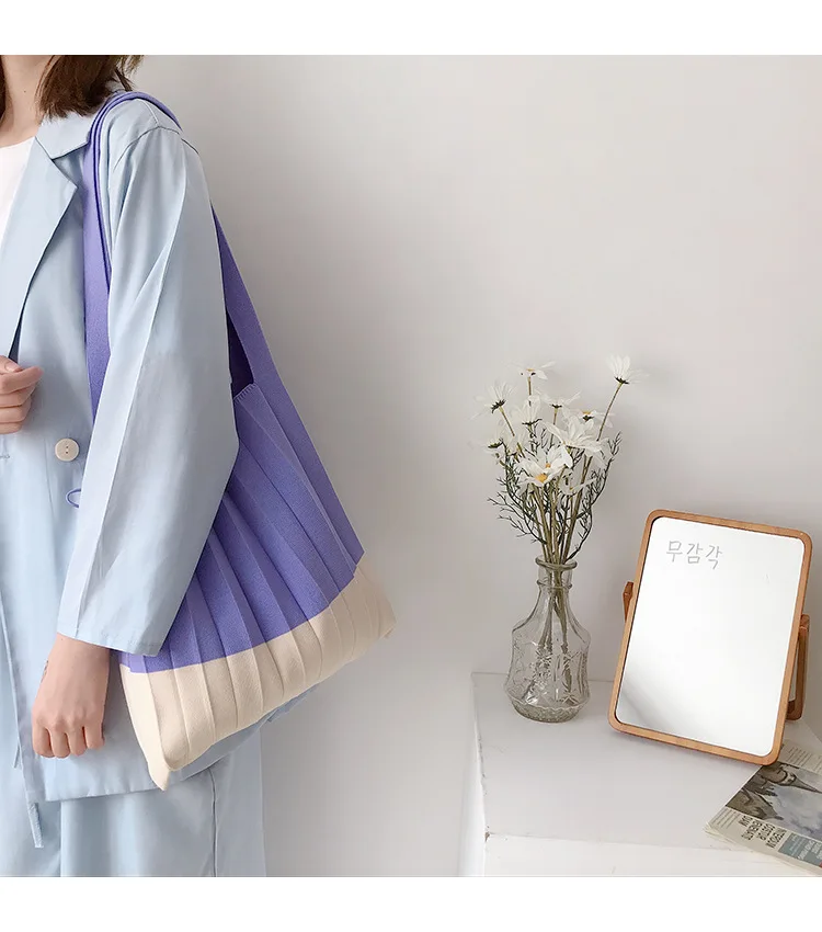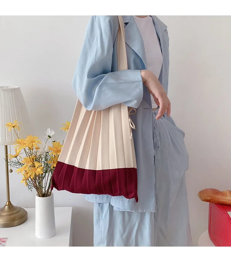 Женская сумка на плечо из вязаной ткани, плиссированные дизайнерские цветные сумки с блокировкой, шерстяная тканевая Складная Сумка-тоут на ремешке для дам