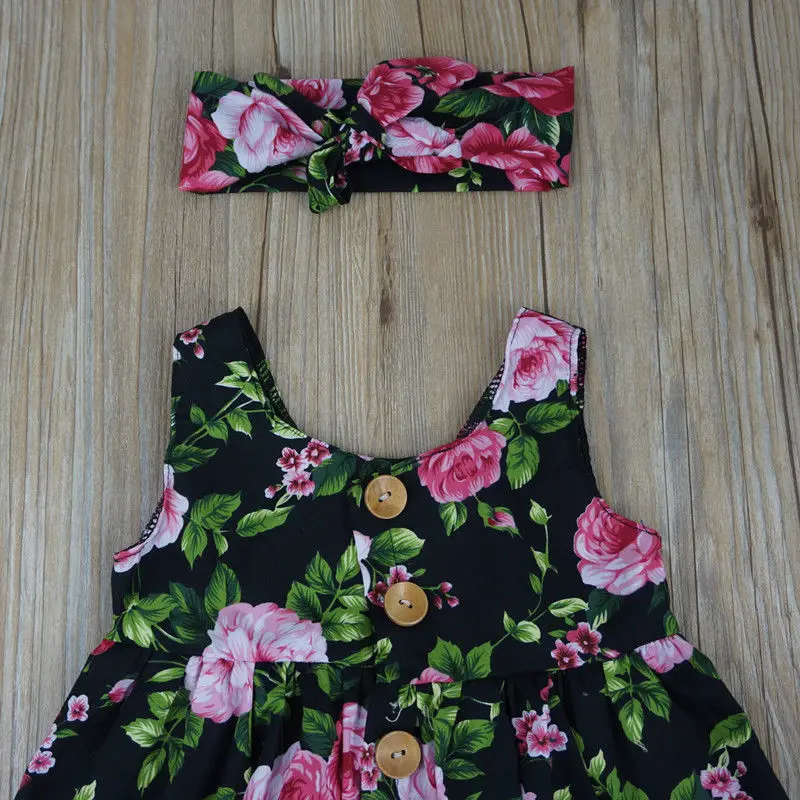 Платье для девочек, без рукавов, с повязкой на голову, с пуговицами...