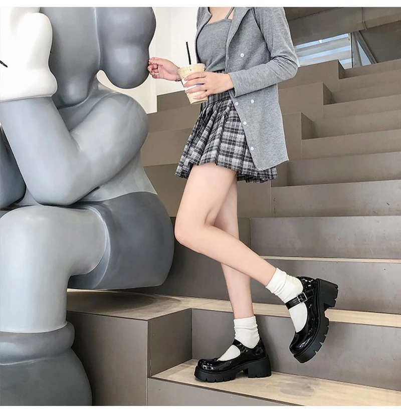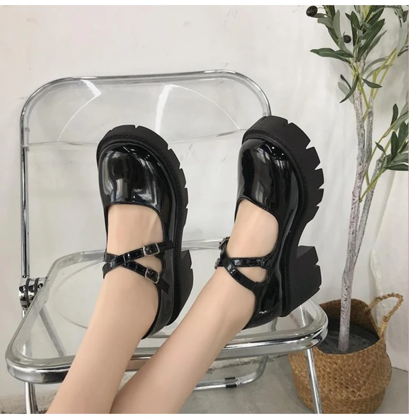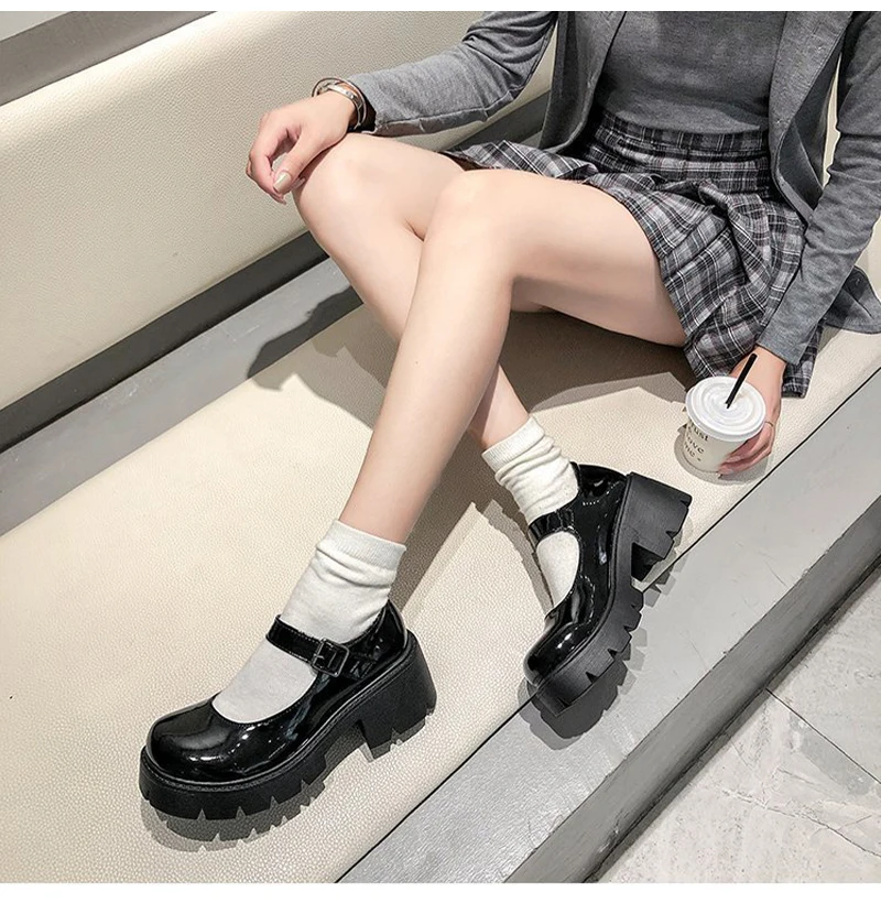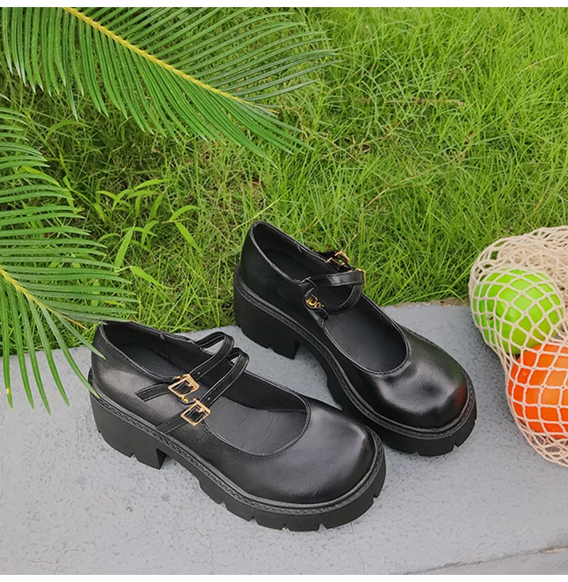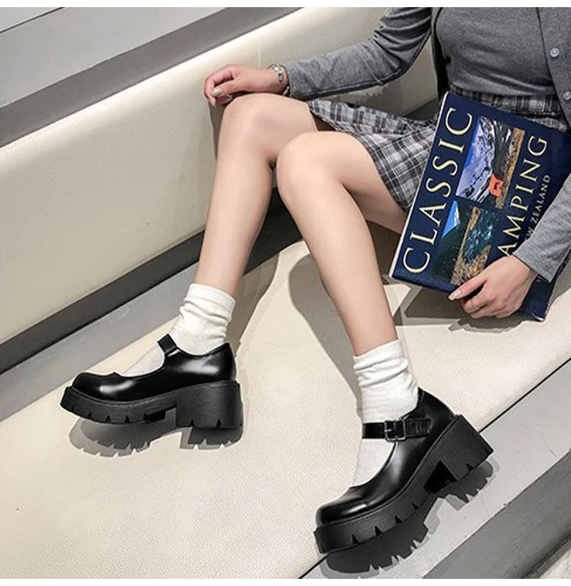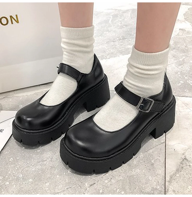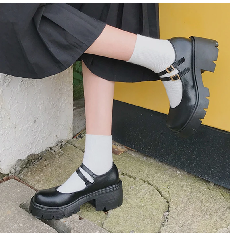 Туфли женские на платформе и высоком каблуке, туфли-лодочки, ПУ кожа, Нескользящие, обувь для косплея, черные