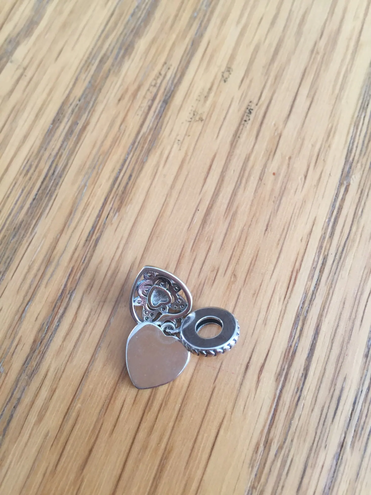 Наконец-то прибыл! Мы ставим почти два месяца, но не виним продавца, а почтовую службу! Этот продавец очень серьезен, имеет отличные продукты и отправляется быстро. Подвеска серебристого цвета с двойным сердцем и знаком S925. Идеальная имитация Pandora, рекомендую всем
