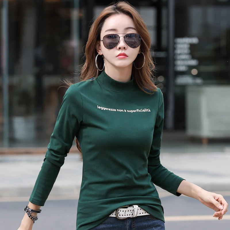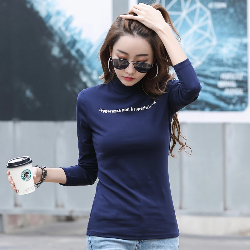 Женская водолазка shintimes с буквенным принтом, корейский стиль, осень 2020, женские Топы с длинным рукавом, футболка, Женская хлопковая футболка, женская футболка
