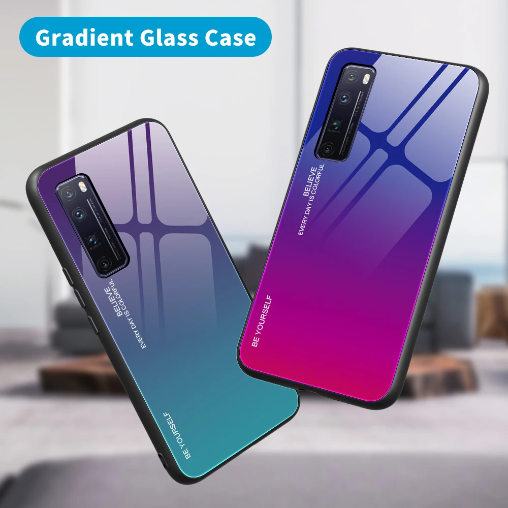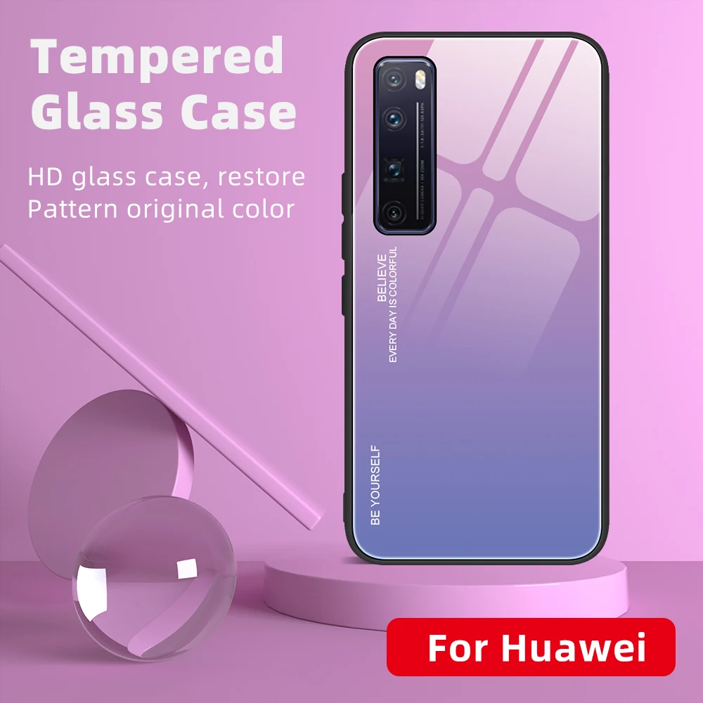 Чехол для телефона с градиентом для Huawei P30 P20 Pro P20 Lite, чехол для телефона из закаленного стекла для Huawei P40 Lite E 5G P40 Pro Plus, Жесткий Чехол