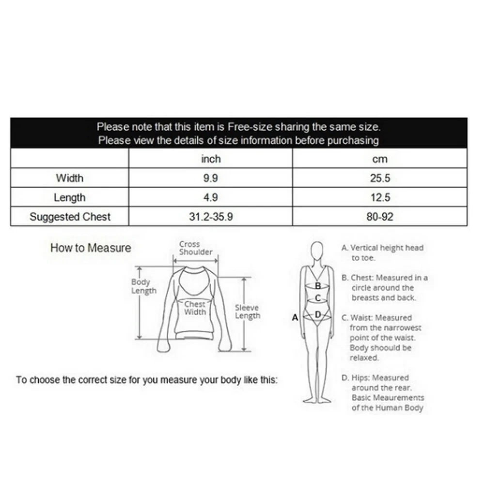 Материал: спандекс, лайкраЦвет: белый, желтый, оранжевый, серый, черный, кофейныйРазмер: один размерБюст: 60-88 см/23,6-34,6 дюймаВес: 40-67 кгС прокладкой: Да (съемный)