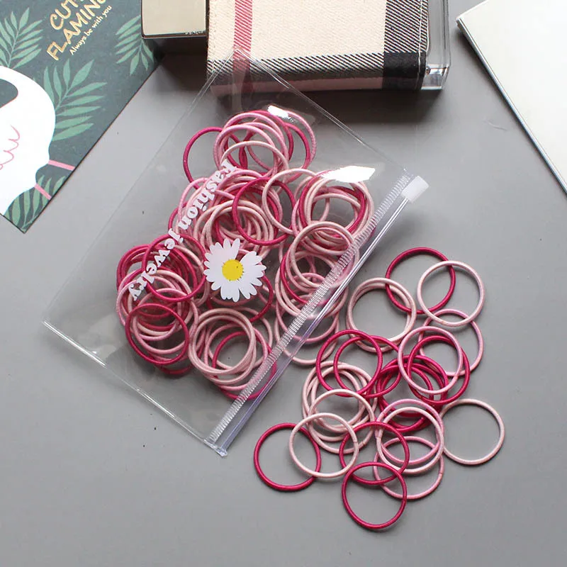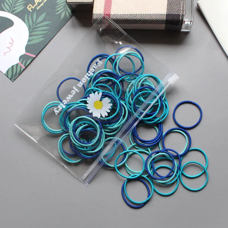 100 шт.лот резинки для волос для девочек, эластичная резинка, розовая, синяя резинка для волос, аксессуары для волос, повязка на голову, резинки для волос, черная эластичная резинка для волос