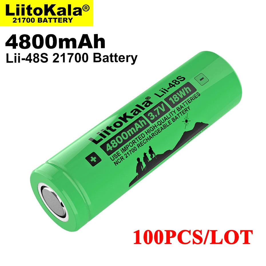 100 шт., LiitoKala Lii-48S 21700, 3,7 в, 4800 мАч, литий-ионные пер...