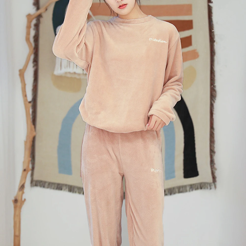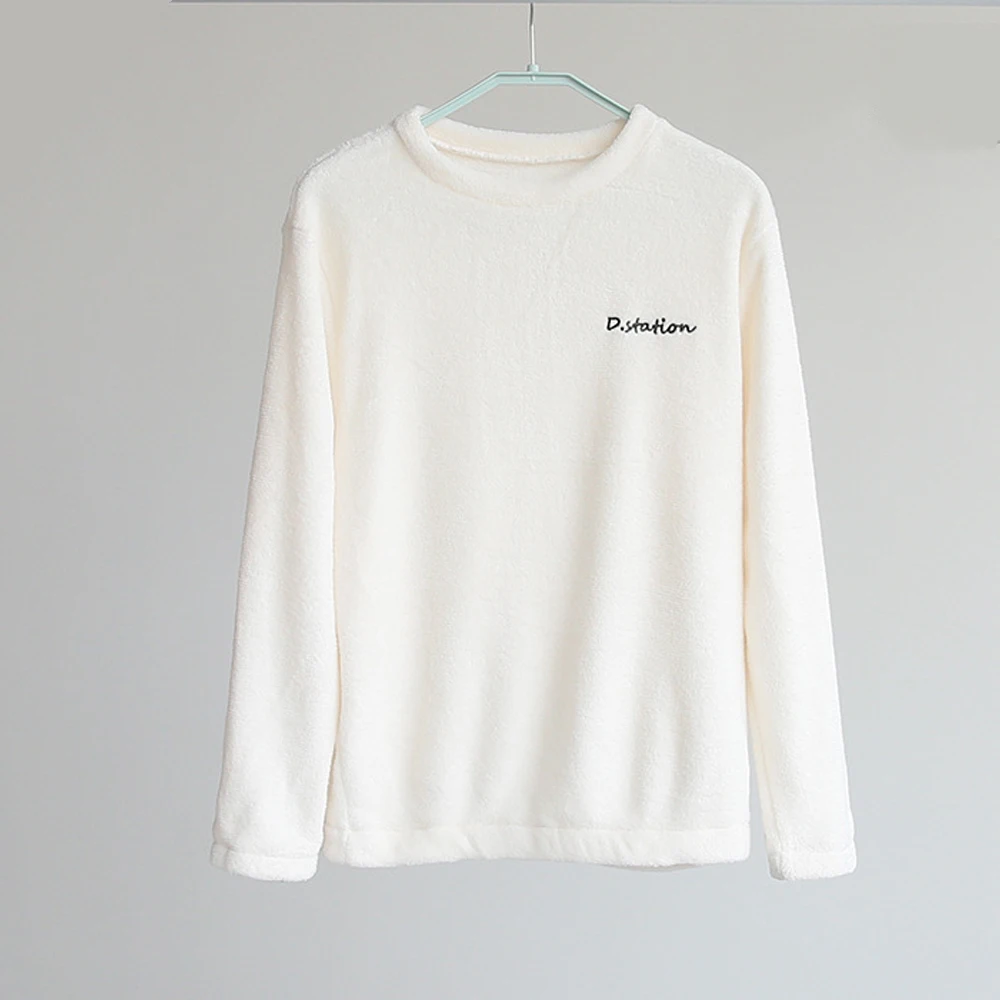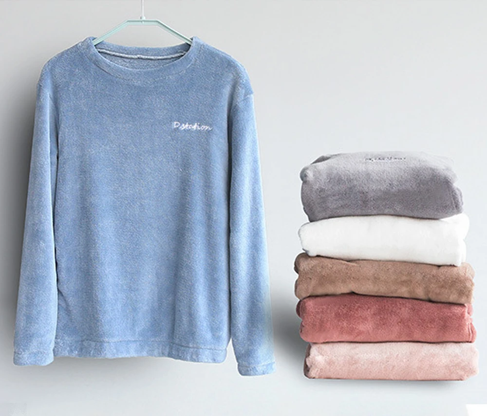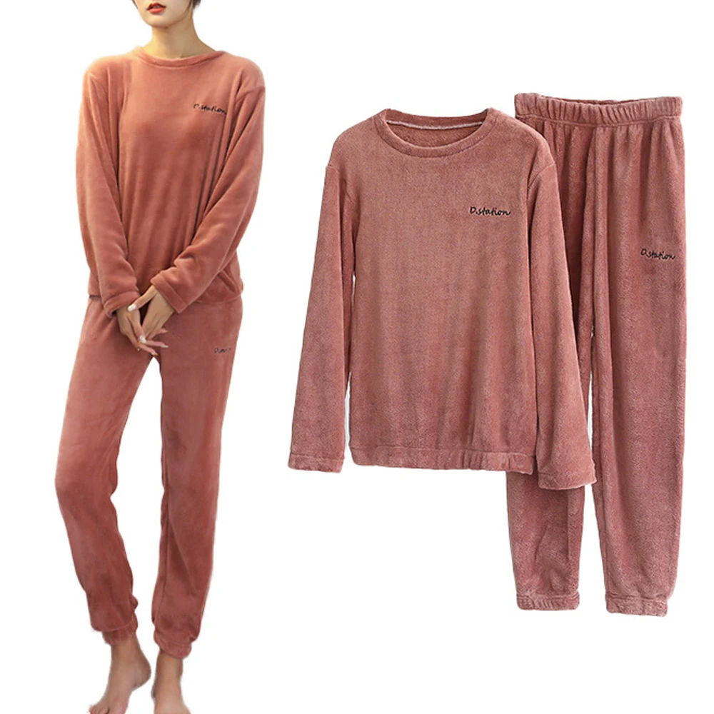 Осенне-зимняя женская одежда для сна, милая бархатная пушистая Пижама, рубашка, однотонная утепленная Пижама для женщин, мягкие Топы с длинным рукавом для сна 2020