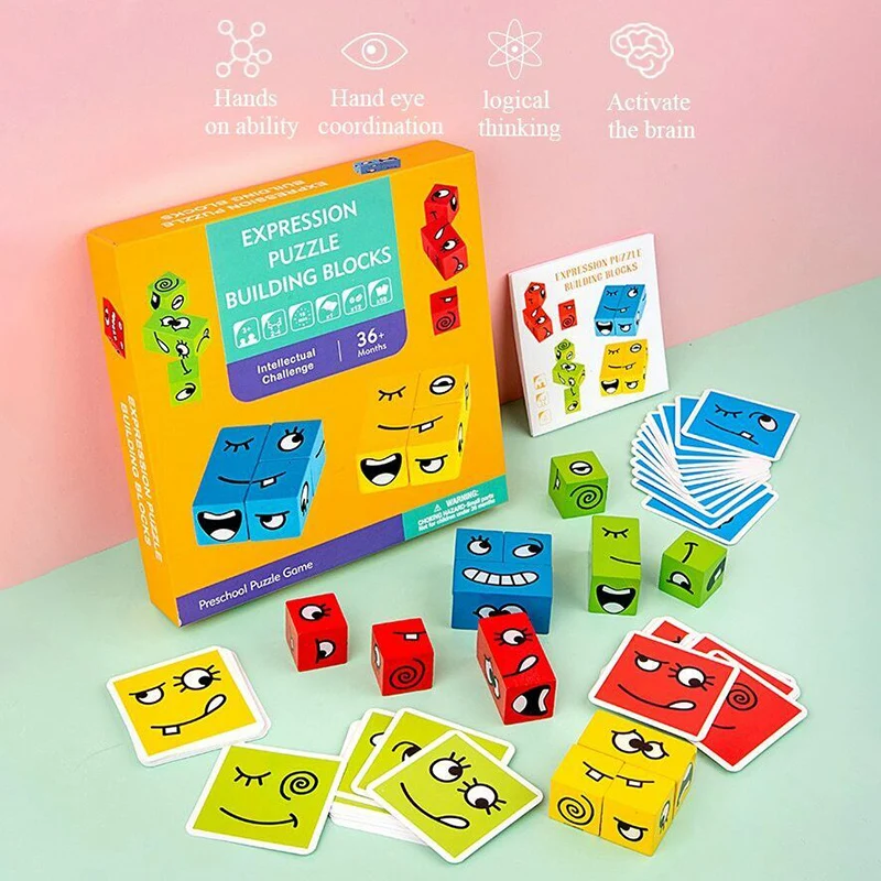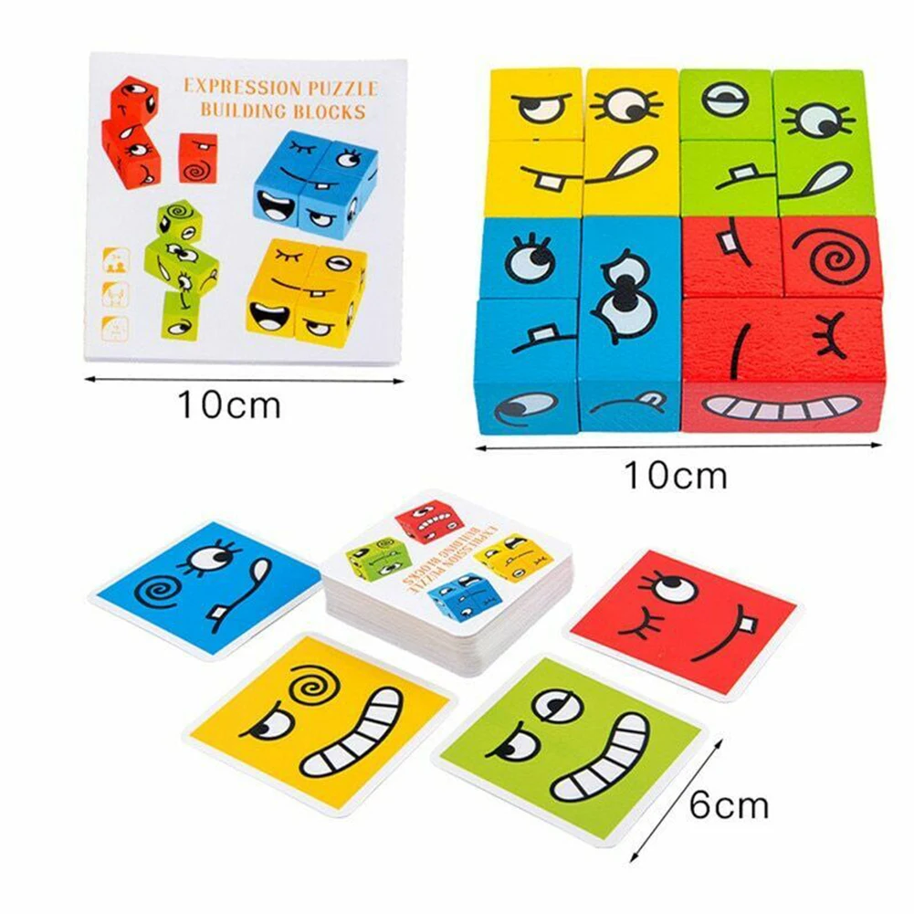Детский Развивающий пазл, меняющий лицо, кубики для сборки, Интерактивная игрушка, деревянные блоки M09