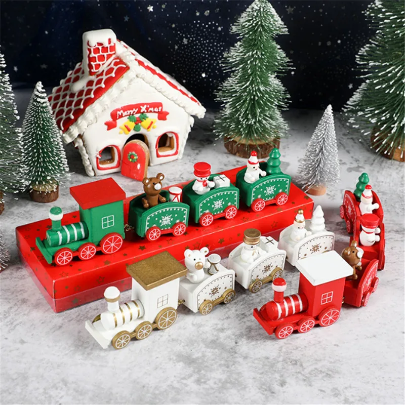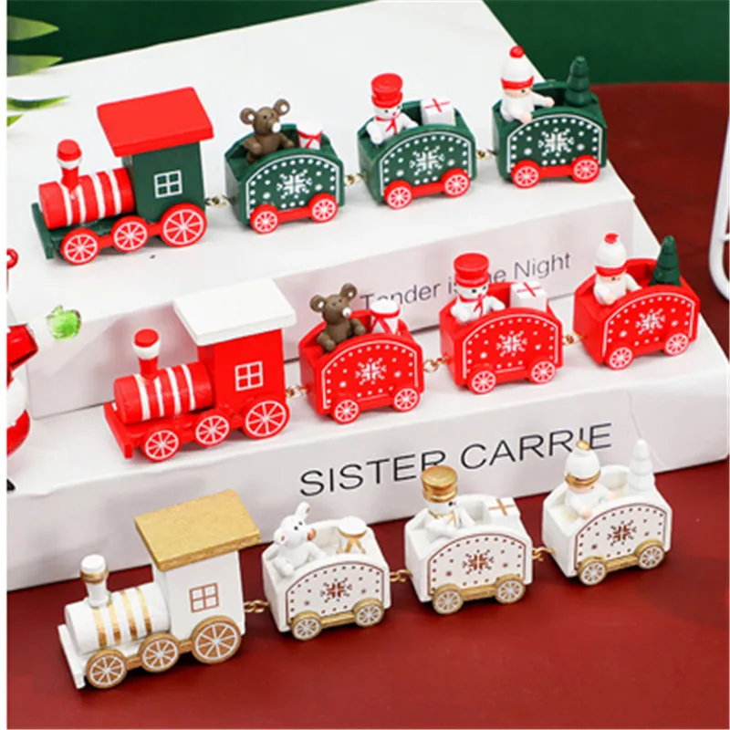 Деревянный Рождественский поезд украшение Рождественское украшение для дома Санта подарок игрушки, поделки стол Декор 2021 Рождество Новый год 2022