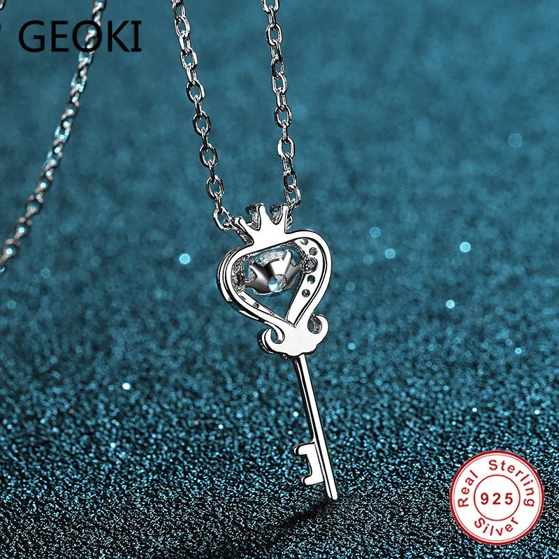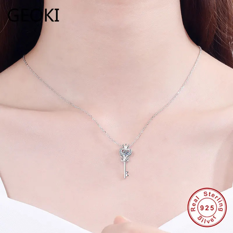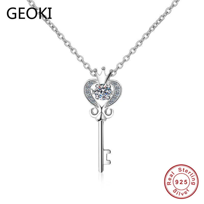 Geoki прошел испытание бриллиантом 0,3 CT Принцесса Корона Moissanite кулон ожерелье из стерлингового серебра 925 пробы ожерелья для женщин Роскошные ювелирные изделия