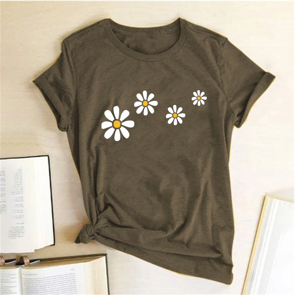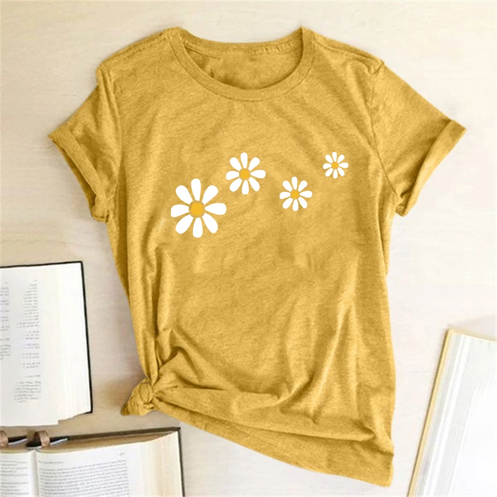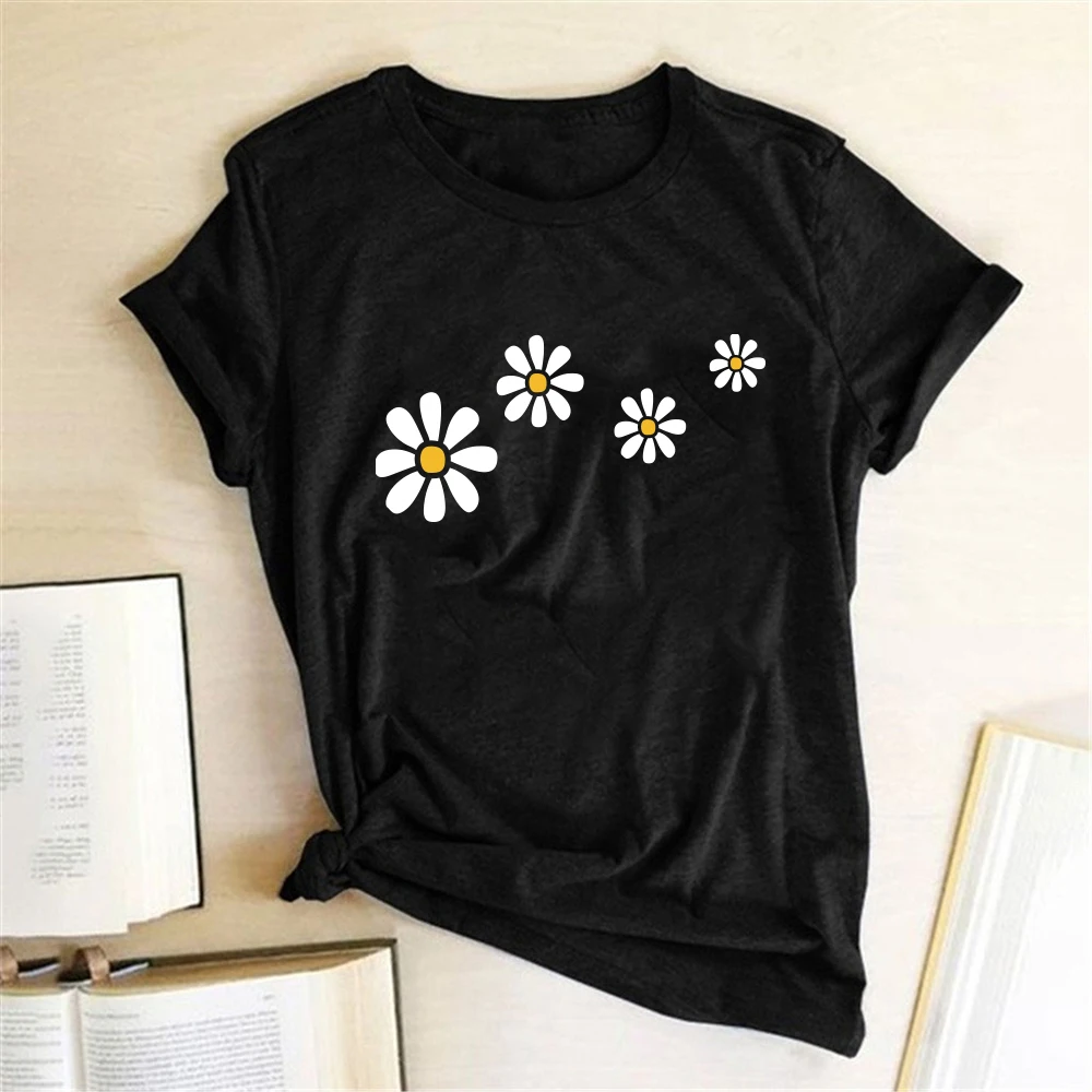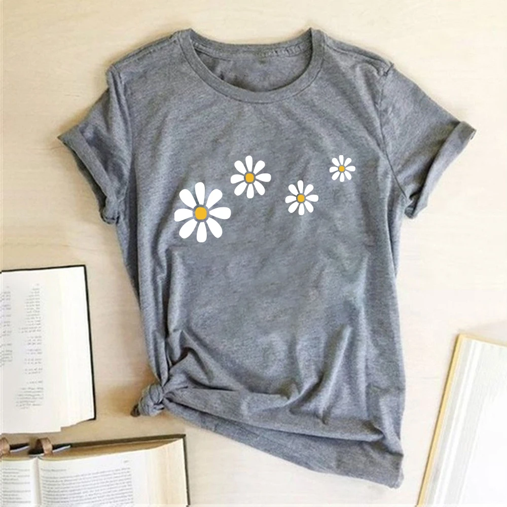 Женские летние футболки с принтом «Четыре ромашки» 2020, эстетическая футболка с графическим принтом модные рубашки для женщин, модные топы в стиле Харадзюку, женские футболки