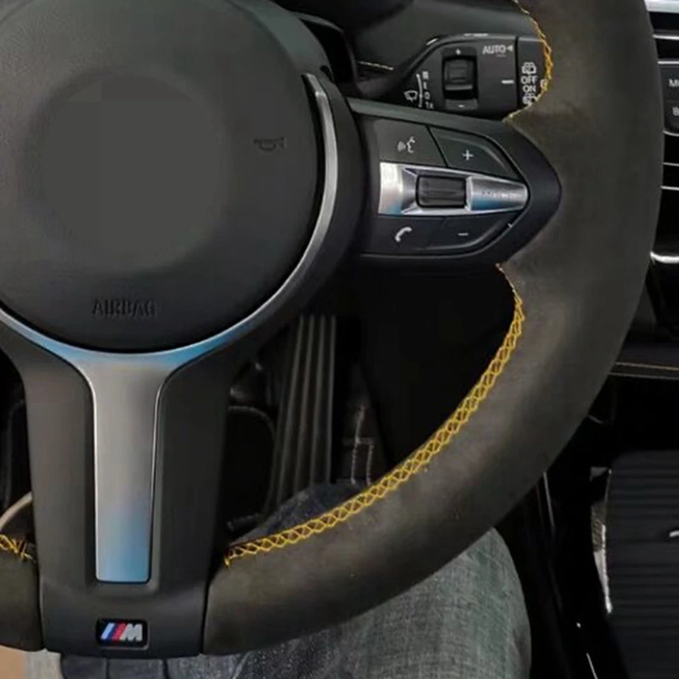 Сшитая вручную черная замша чехол рулевого колеса автомобиля для BM...