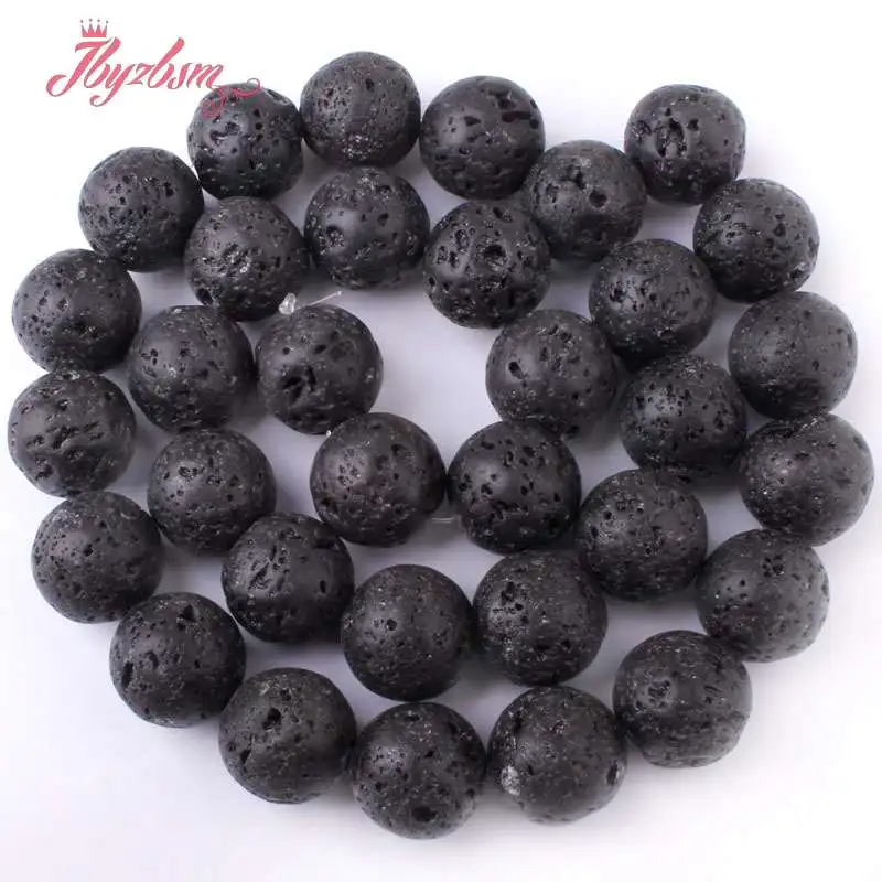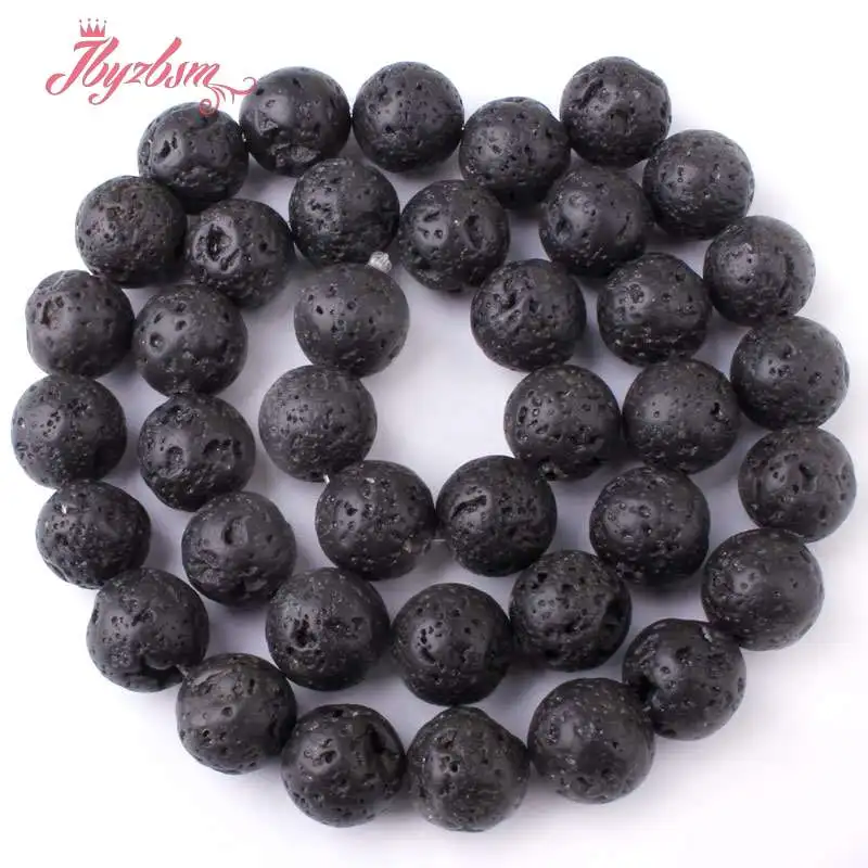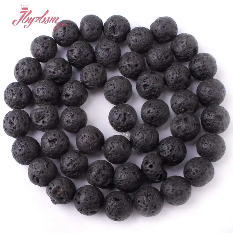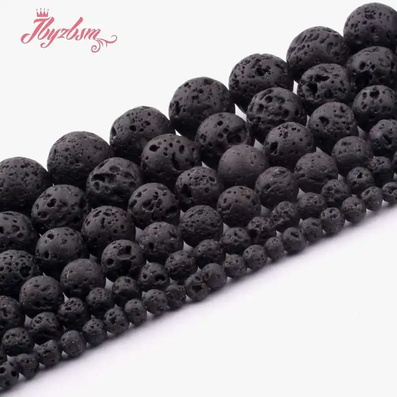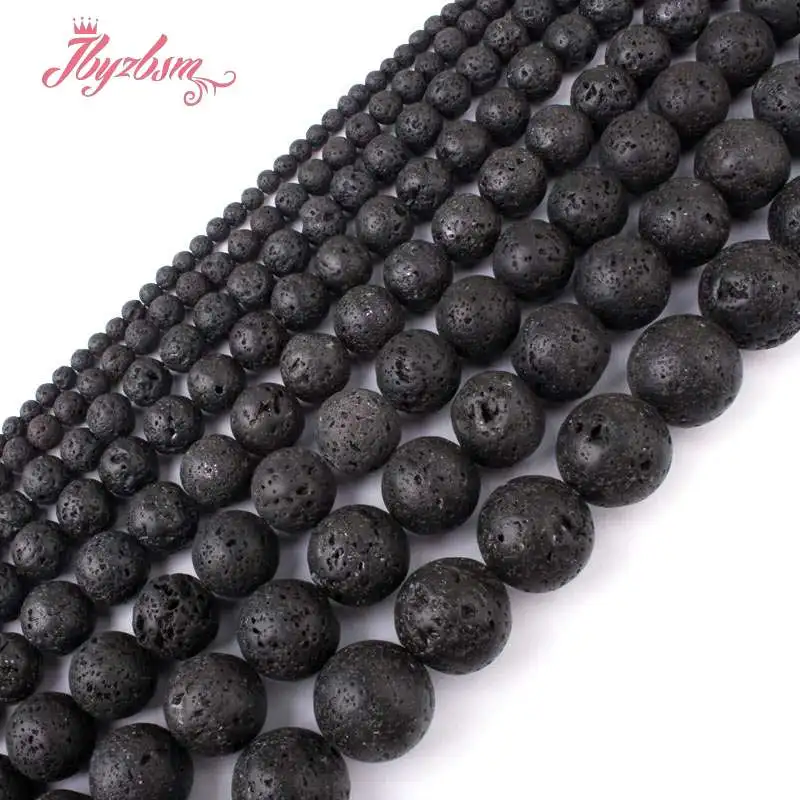 Бусины из натурального камня, Круглые, черные, 4,6,8,10 мм, натуральный вулканический камень дюйма, нитка 15 дюймов