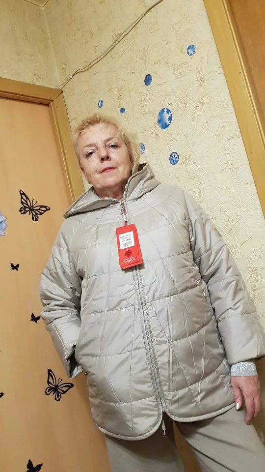 отличная курточка , заказывала маме ещё не померила ,но я думаю всё подойдёт , качество на все 5 + , всё аккуратно прошито ,ни каких торчащих ниток нет , всё отлично, продавцу спасибо , будем заказывать ещё,шейте побольше больших размеров !!!