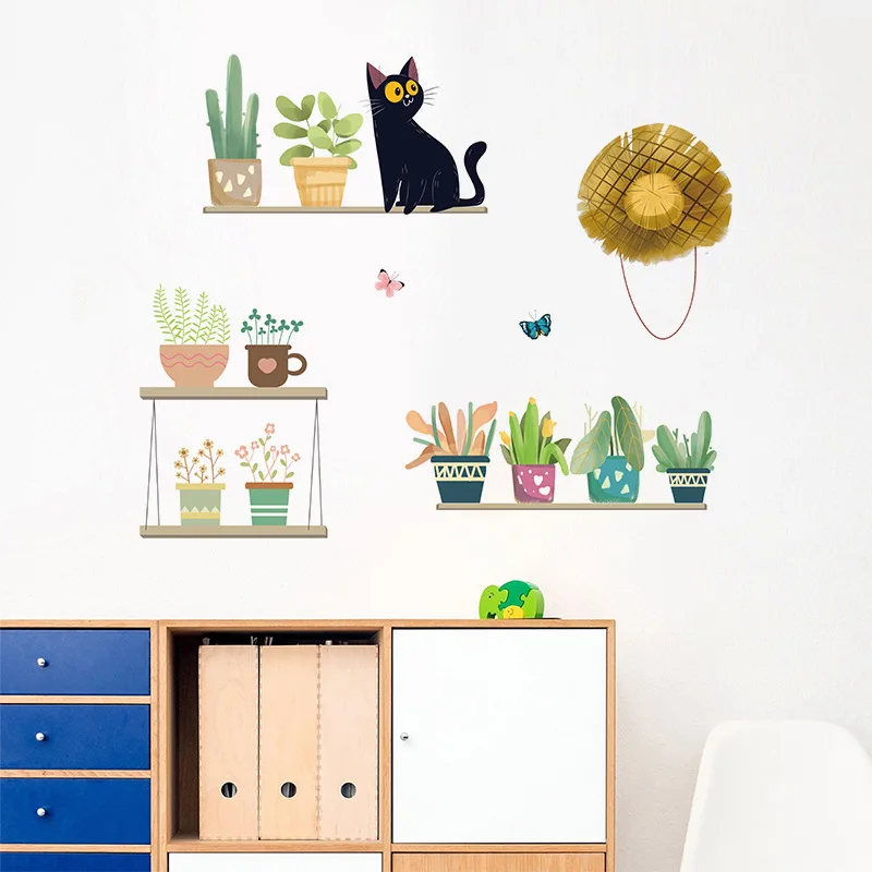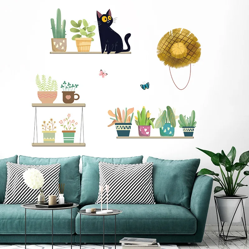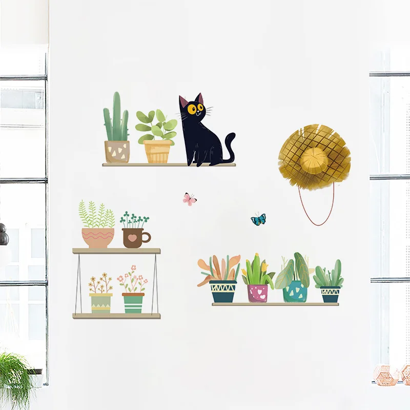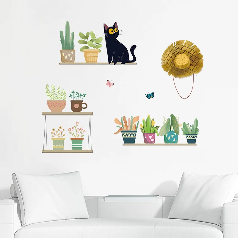Милый котенок цветочный горшок наклейки на стену гостиной спальни домашнее настенное украшение художественные настенные стикеры комбинированные съемные обои