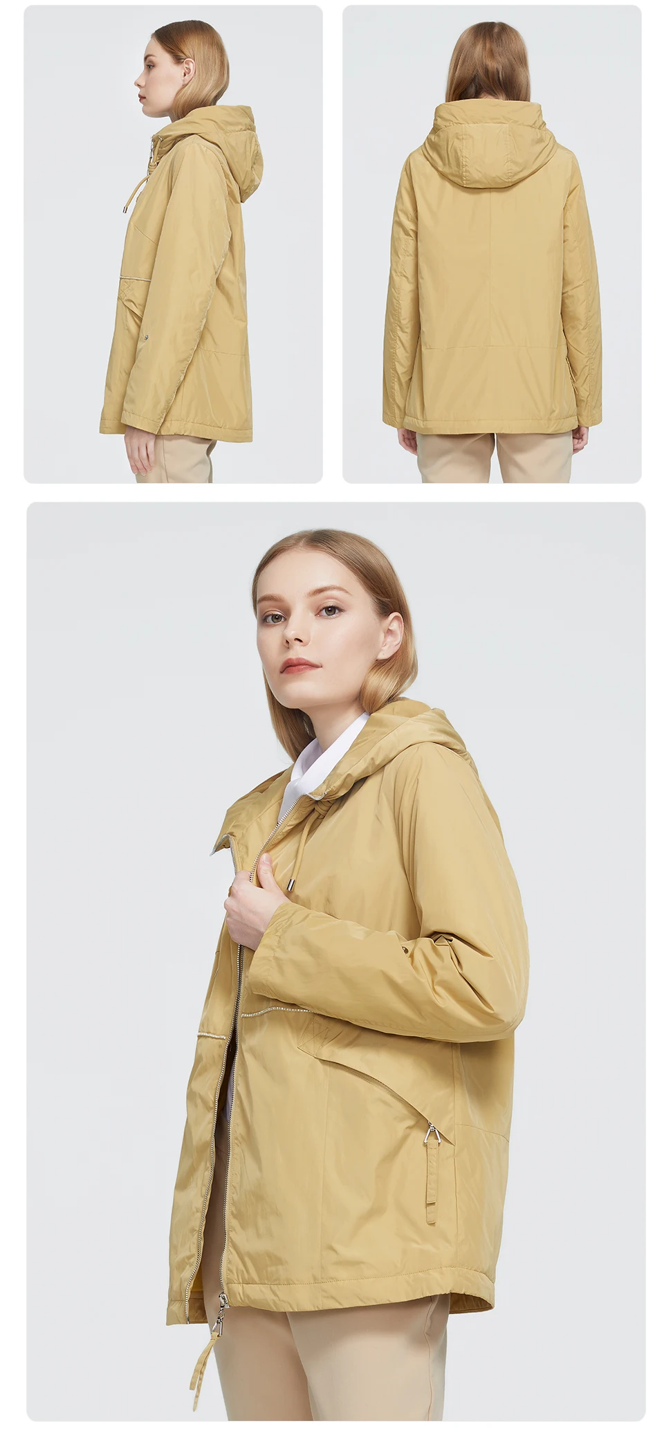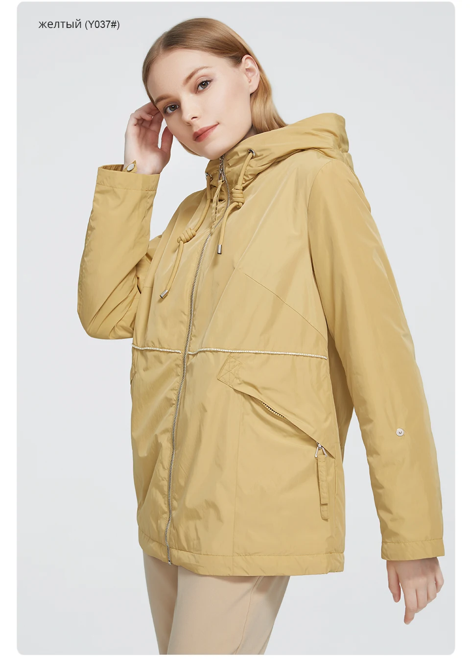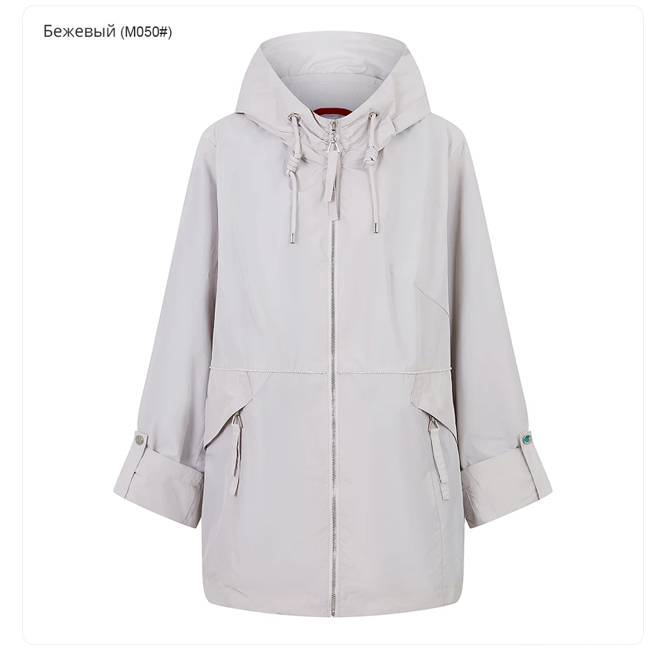 Тренч Женский демисезонный из хлопка, ветрозащитный, с капюшоном, 9381