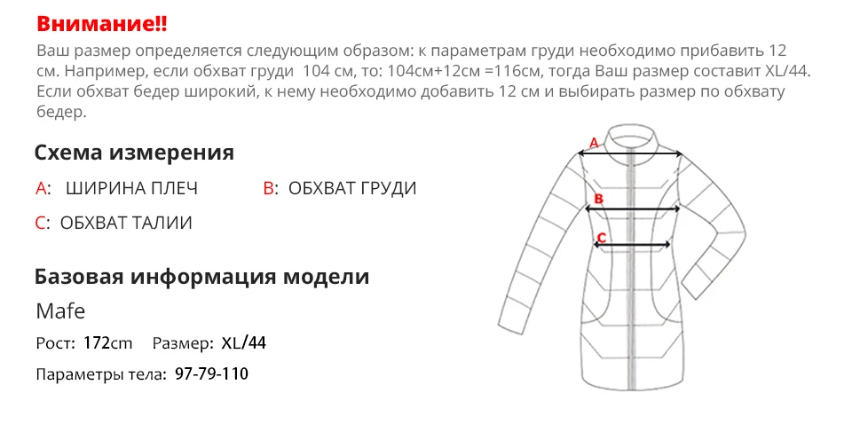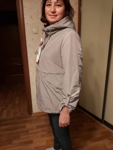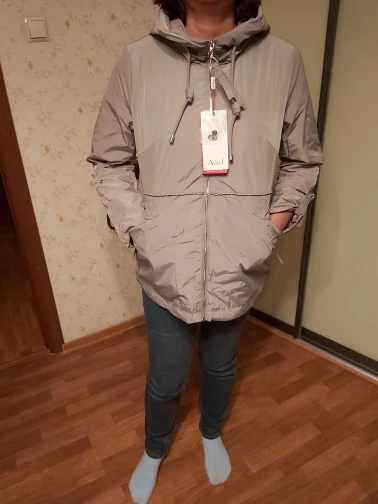 Очень понравилась куртка, я здесь же заказывала зимнюю куртку, заказа пришел за 2 недели, все было хорошо упаковано. Куртканемного свободновата, ог120, об125 заказала 6xl,можно было и на размер меньше, но мне понравилась и так, продавцу успехов, хороший магазин.