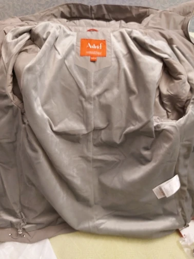Ветровка утепленная, внутри подклад типа флиса, приятный, тепленький. Цвет скорее бежевый, чем зеленый ( но тоже красивый). Ткань плотная, водонепроницаемая думаю. Фурнитура качественная, пошив, подклад - все отлично, как всегда у Астрид. Сначала заказали 5xl, но потом все же решили взять на размер меньше (спасибо продавцу, заменил размер без проблем) и правильно, 5xl была бы слишком свободна для рос. 56-58. Куртка удлиненная, до середины бедра, с брюками, джинсами отлично, да и с юбкой тоже. При заказе двух вещей продавец положил в подарок шарфик. Спасибо. С удовольствием будем заказывать еще, вещи качественные