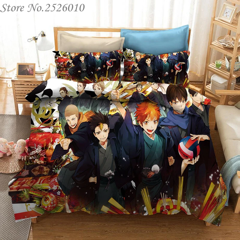 Комплект постельного белья с 3D принтом Аниме Haikyuu, пододеяльник, льняное постельное белье, домашний текстиль, двойной, полный размер QueenKing