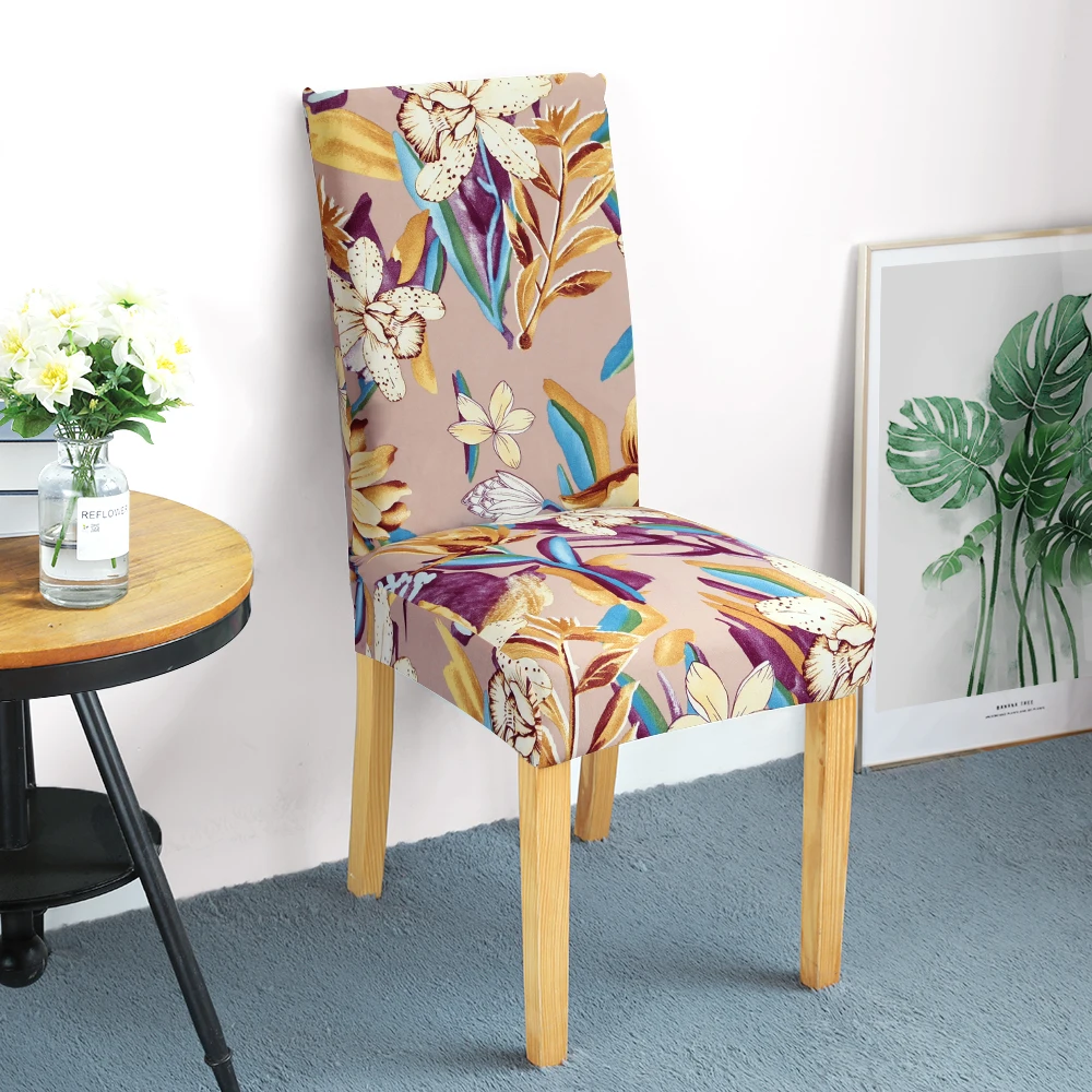 Эластичный чехол на стул, натяжные чехлы на стулья с принтом, съемные моющиеся чехлы из спандекса для обеденного стула для дома, банкета, отеля Вечерние