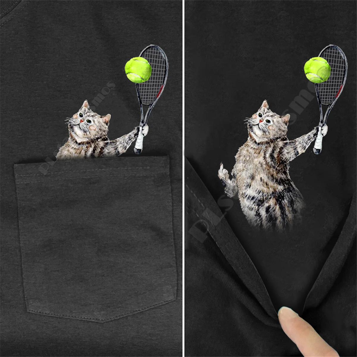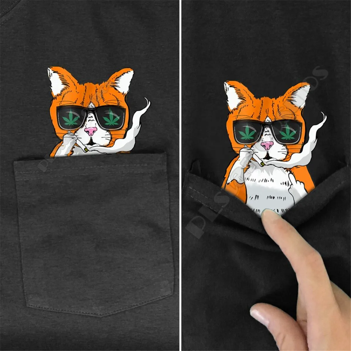 Футболка PLstar Cosmos Мужскаяженская с принтом кошки, забавная хлопковая черная рубашка с карманами, стиль 3, Прямая поставка, на лето