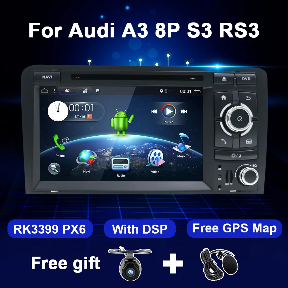 Автомобильный мультимедийный DVD-плеер, DVD-плеер на Android, с GPS, для Audi A3, 8P, A3, 8P1, 3 двери, хэтчбекS3, 8P, RS3, Sportback, стерео, типоразмер 2 Din