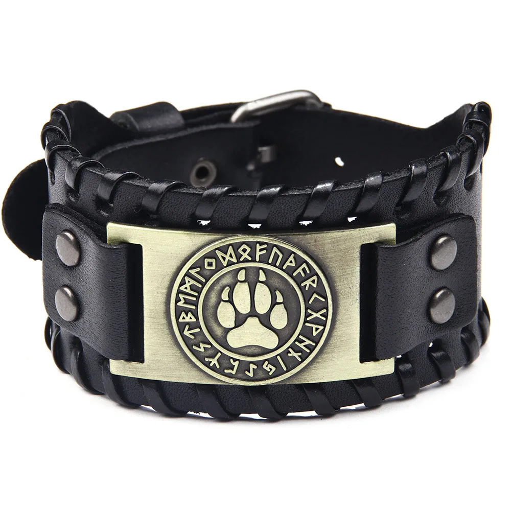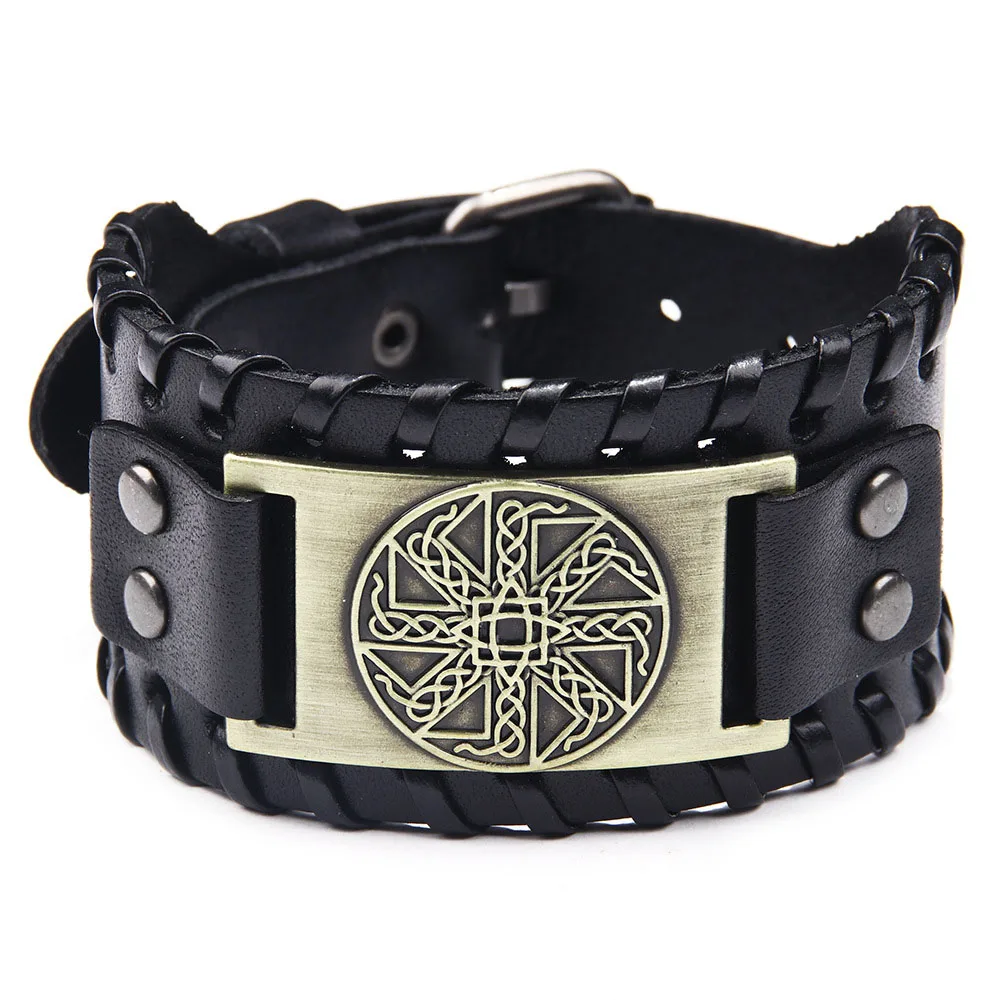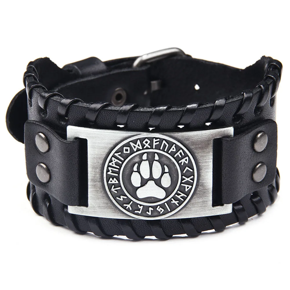 Кожаный браслет в стиле панк, черный тотем, скандинавский Викинг, с...