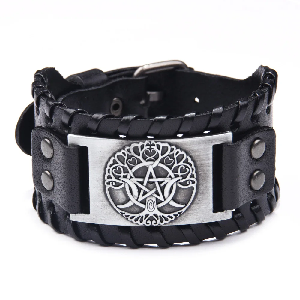 Браслет-манжета Кожаный, в стиле панк, из сплава, с деревом жизни, ...