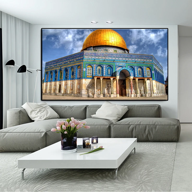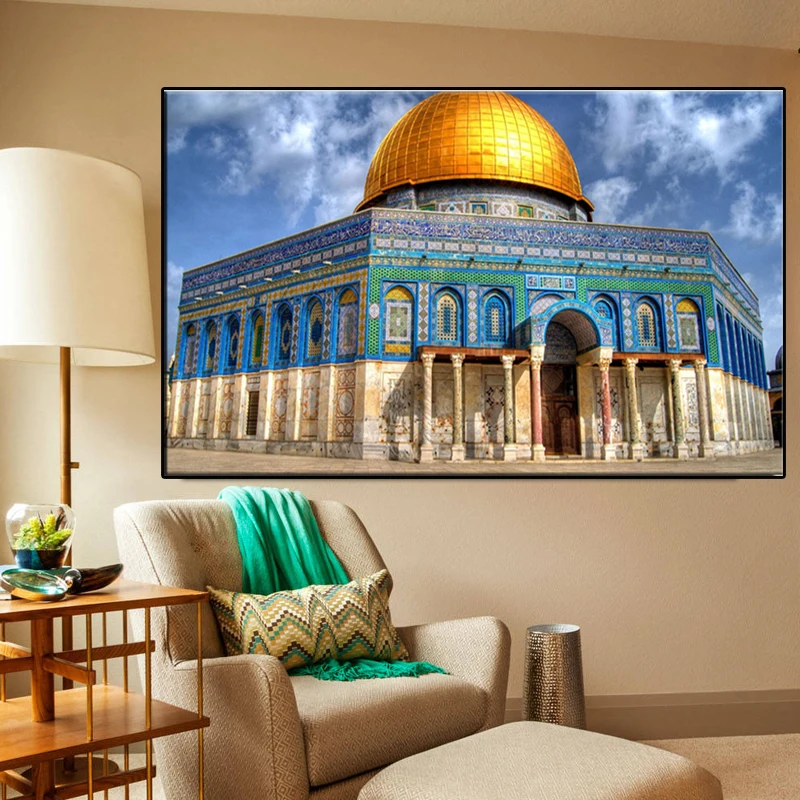 Картины на холсте, изображения куадроса, всемирно известного здания, золотой камень, большая мечеть, мусульманская настенная декорация, картины, мечеть Аль-Акса
