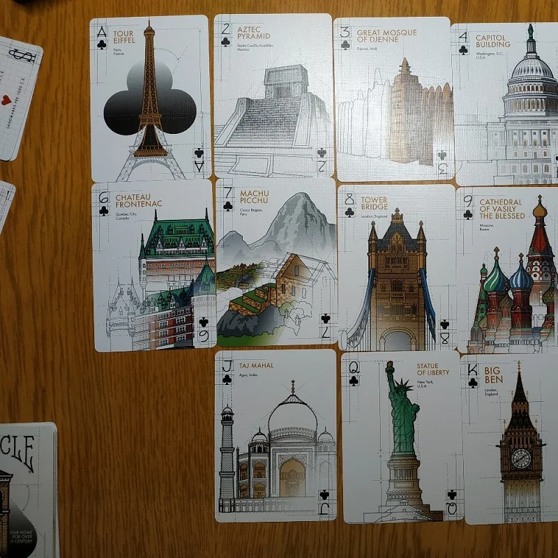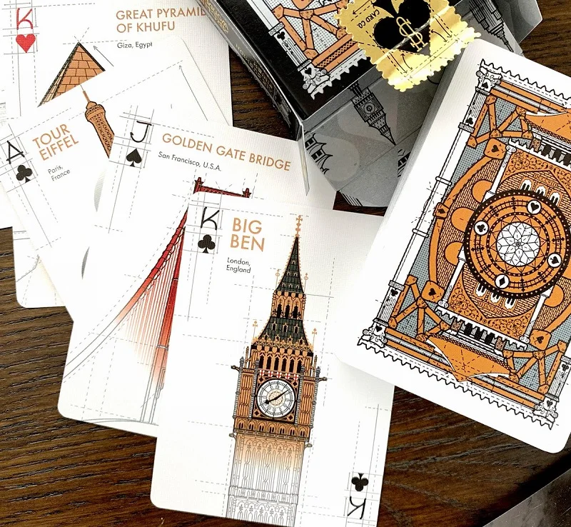 54 ручные иллюстрированные архитектурные романы со всего мира Пользовательские Ace of Spades Уникальный дизайн задней панели карты Премиум тисненая и фольгированная посылка