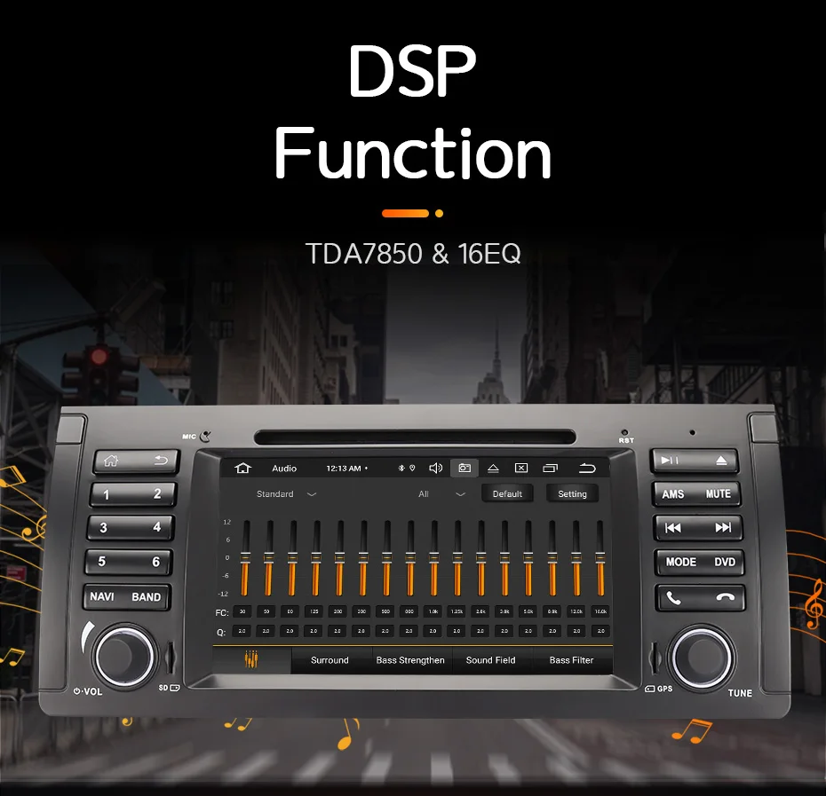 DSPИспользуется для сабвуфера и басов. Сабвуфер, средний, средний, высокий, высокий, супер высокийДелайте различные настройки звука. Бас полный, мягкий и эластичный. Бас толстый и мощный.Средние и высокие ноты яркие и не жесткие. Высокие каблуки тонкие, круглые и не острыеЗвук, естественно, полный и гибкий, и уровень четкий и круглый.