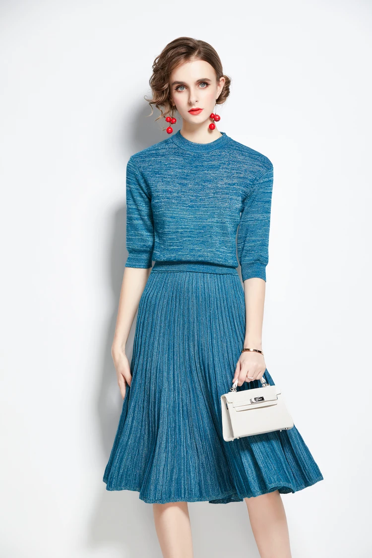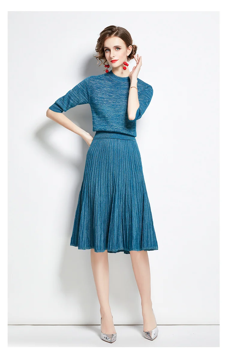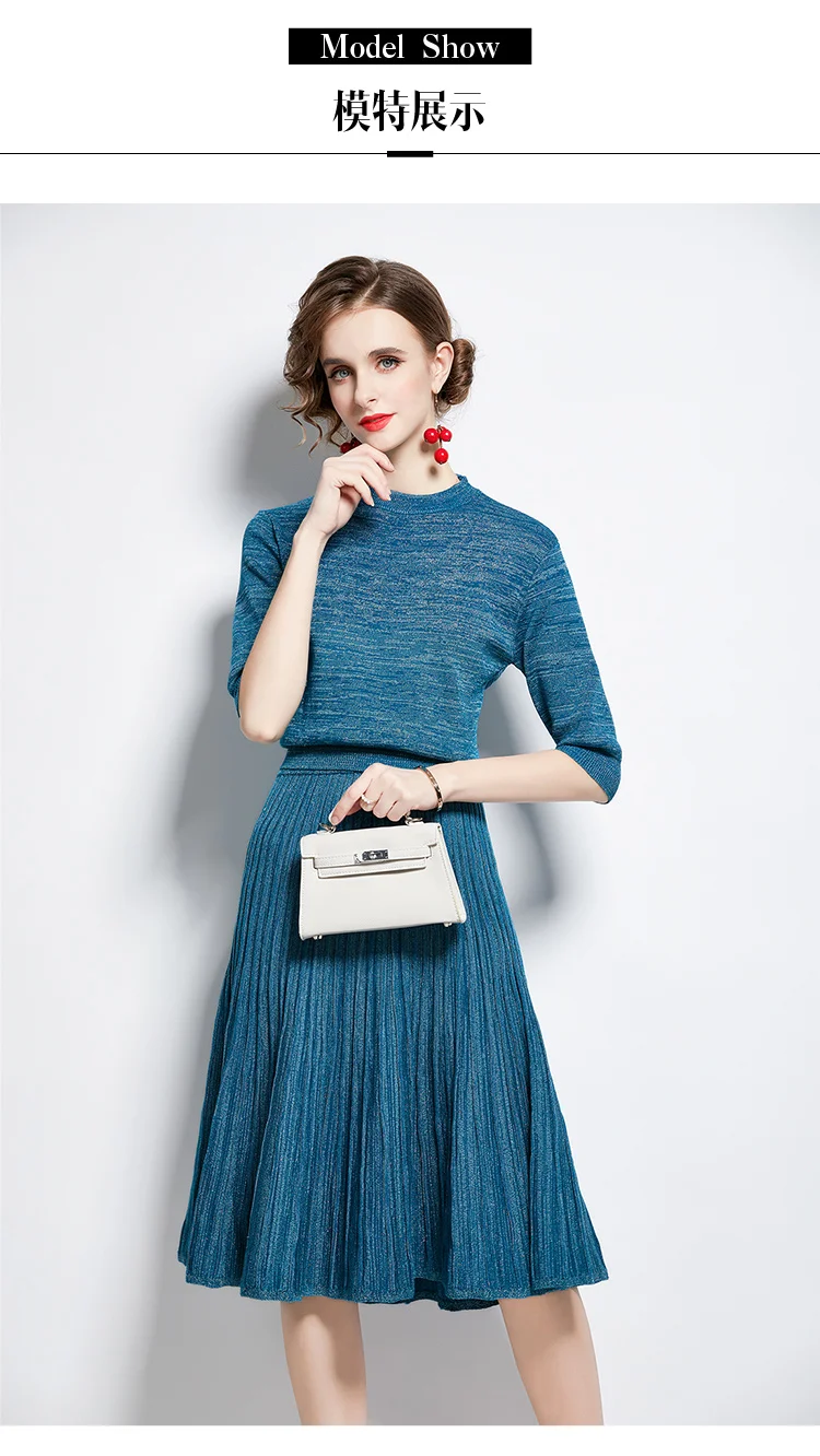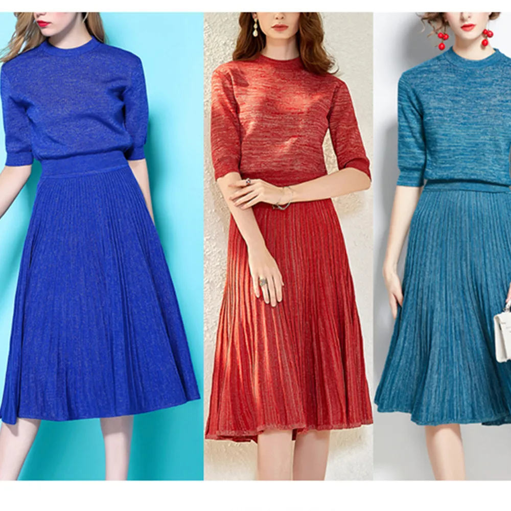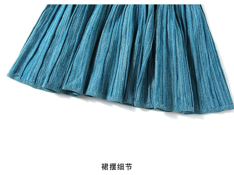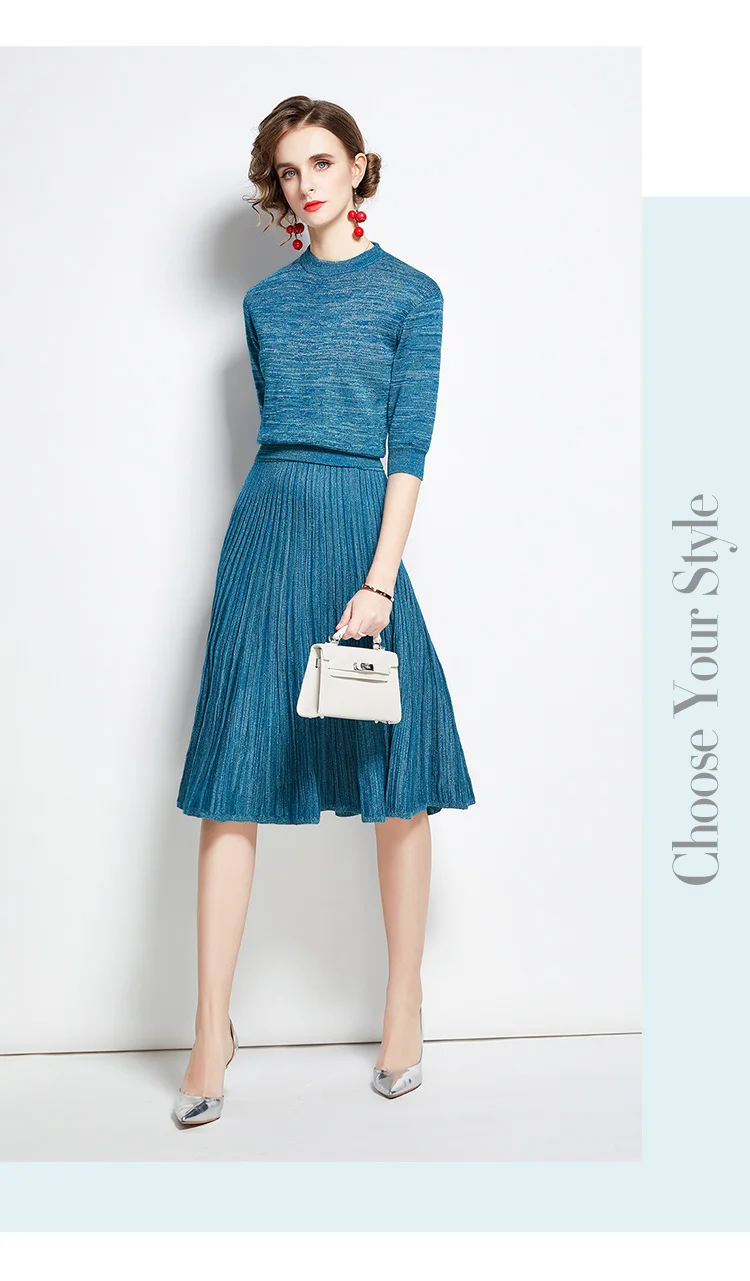 Женский вязаный комплект из двух предметов, яркий Шелковый пуловер, свитер и высокая талия, осень комплект с плиссированной юбкой