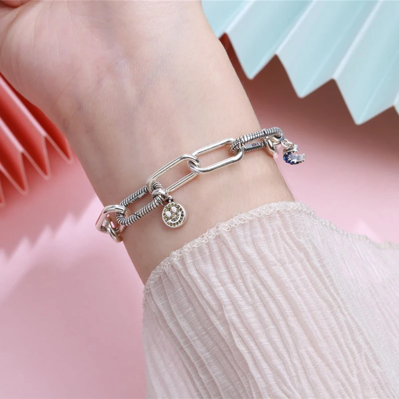 S925 пробы цвет серебра талисман браслет-цепочка DIY бисера серьги браслет подходят оригинальный мне браслет для женщин, сделай сам, ювелирное изделие