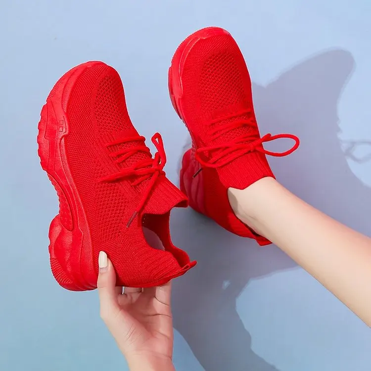 Женские кроссовки на танкетке, дышащие сетчатые туфли на высокой платформе и толстой подошве, повседневная обувь на осень 2020