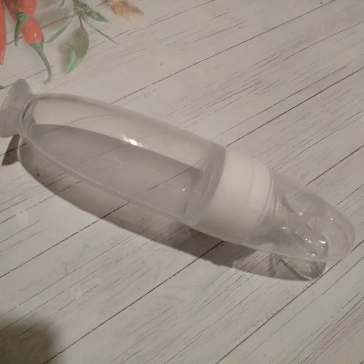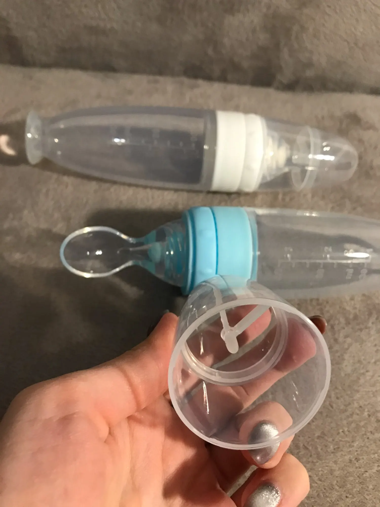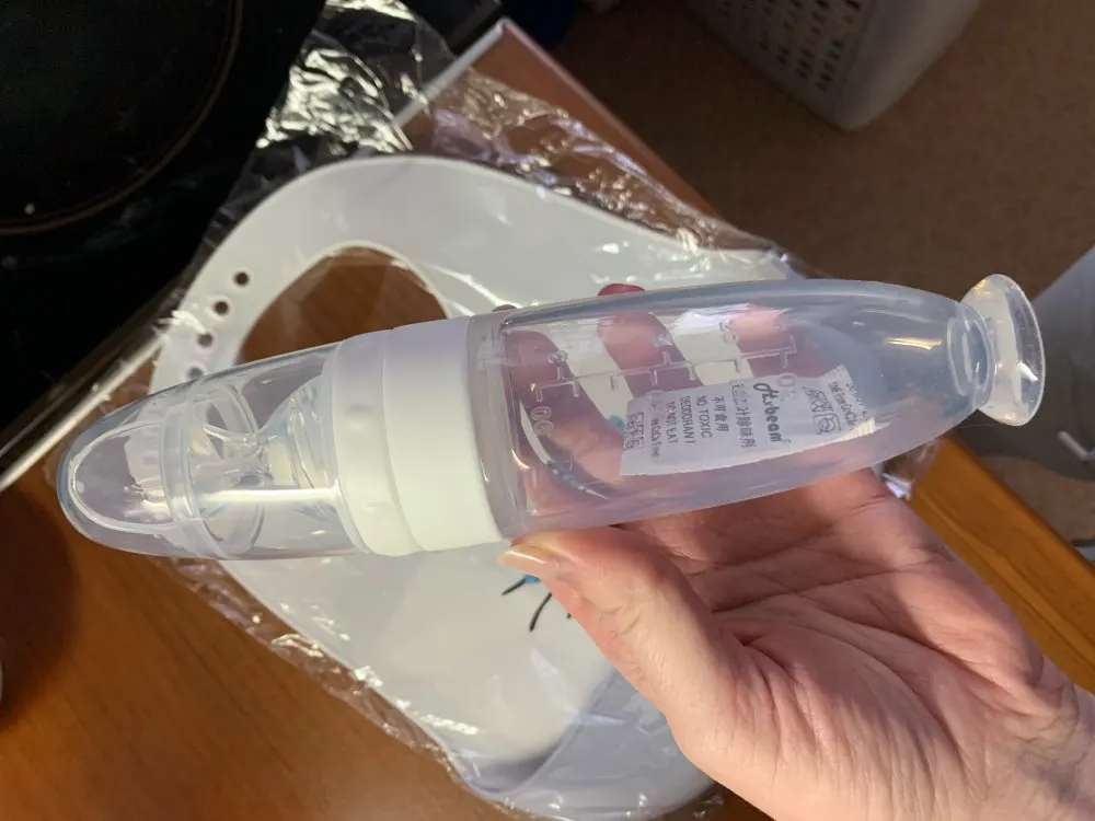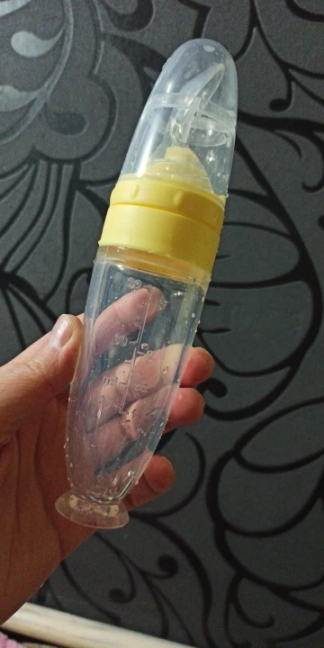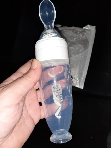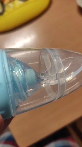 Отличная бутылочка 90 мл, ложечка из мягкого силикона и сама бутылочка тоже силиконовая. на крышке есть клапан, который перекрывает отверстие в ложечке, чтобы не проливалось содержимое. это очень удобно. На дне бутылочки есть присоска, на столе стоит устойчиво. Все детали раскручиваются, удобно мыть. Доставка быстрая.