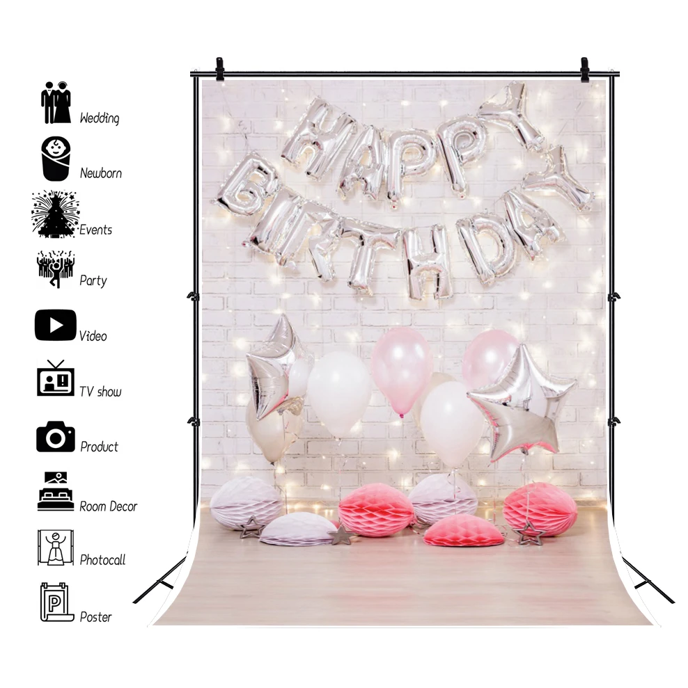 Розовый фон для фотографии серая кирпичная стена с днем рождения воздушные шары Цветочный декор ребенок Фотостудия