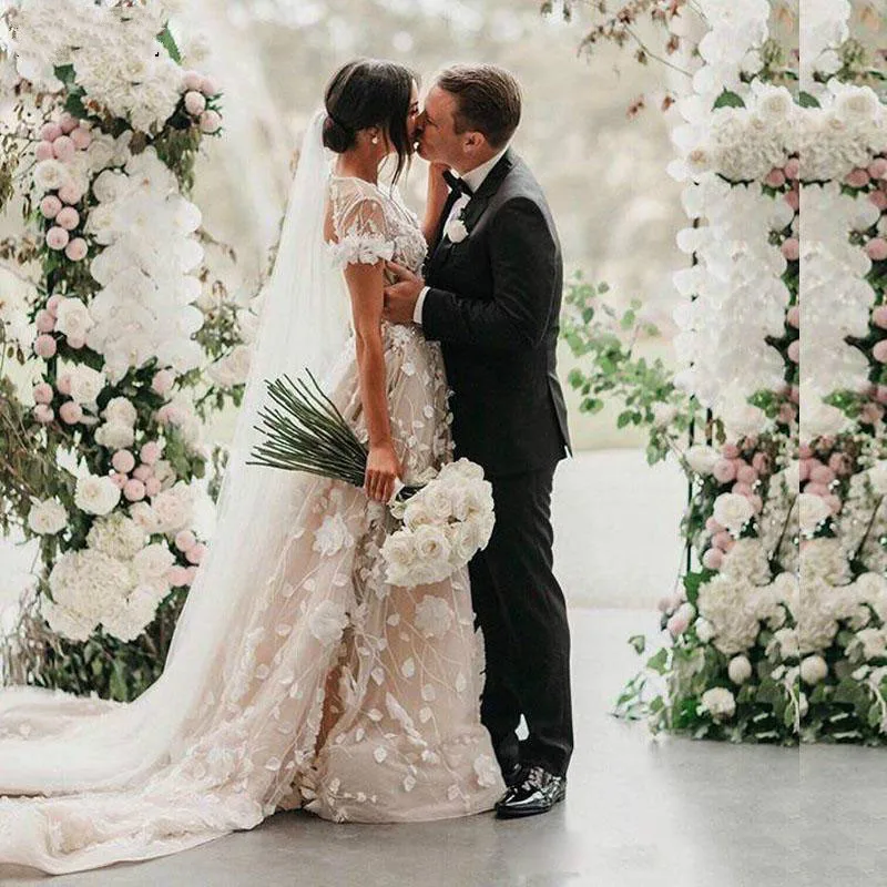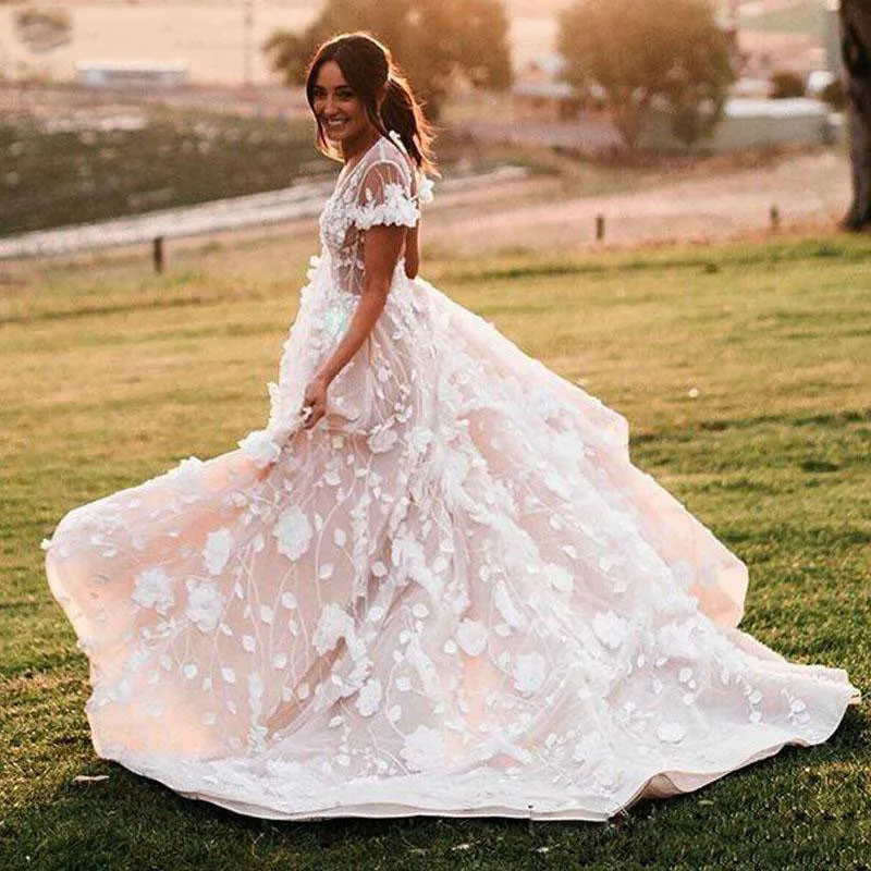 Свадебное платье с рукавом 2020 с 3D цветами и v-образным вырезом, кружевные свадебные платья, свадебные платья Vestidos De Novia