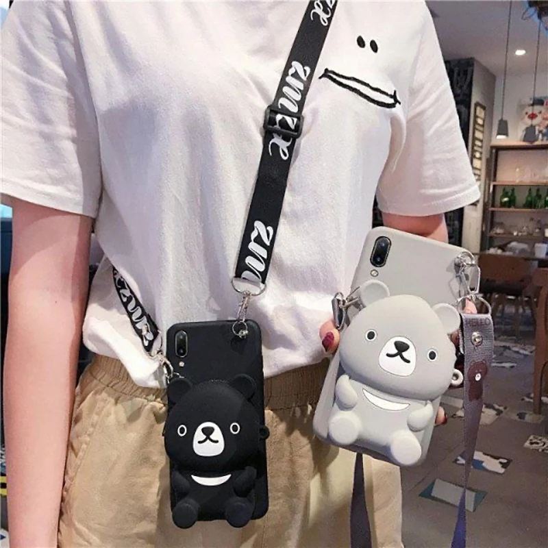 Чехол для телефона с отделением для монет для Samsung Galaxy S20 Ultra S10 Lite S9 S8 Plus S7 Edge Note 20 10 9 8, мультяшный силиконовый кошелек с ремешком