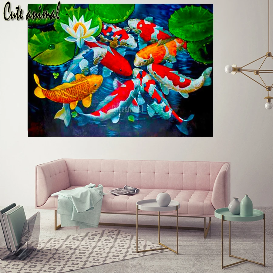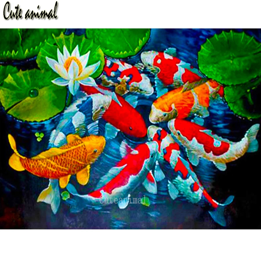 5D алмазная картина крестиком Koi fish carp lotus Full drill квадратная Алмазная мозаика Алмазная вышивка ручной работы настенный арт подарок