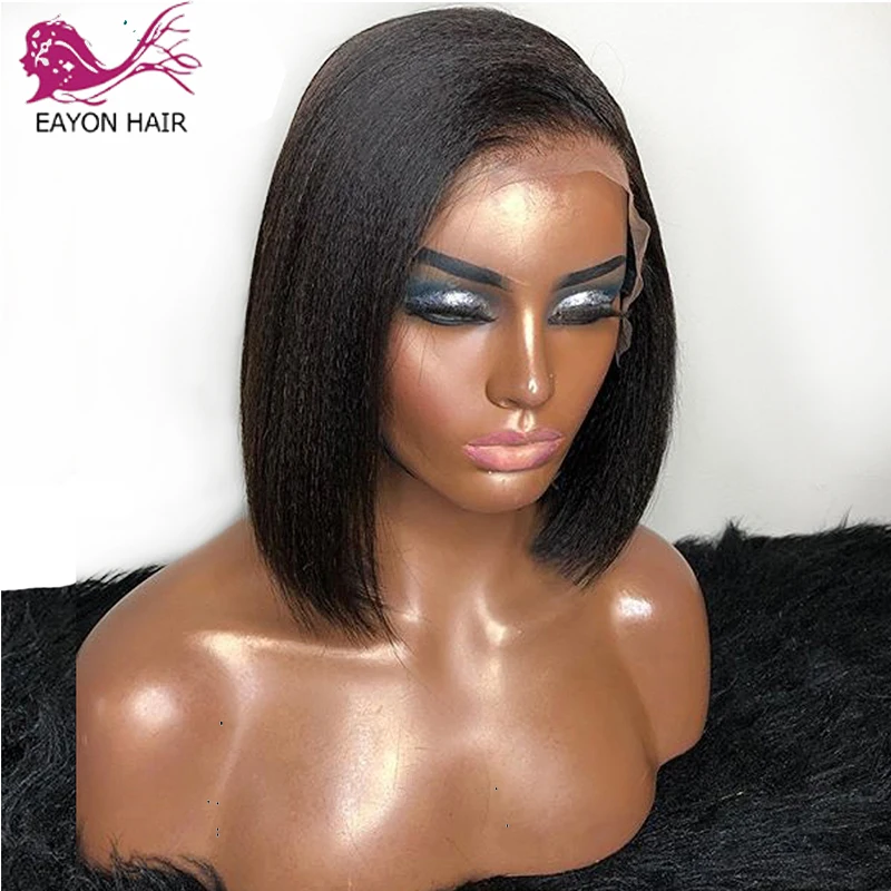 Парик EAYON 5x5 на шелковой основе, Боб, Yaki, прямые короткие парики из человеческих волос на сетке спереди, парик с верхней застежкой головы с детскими волосами, перуанский Реми