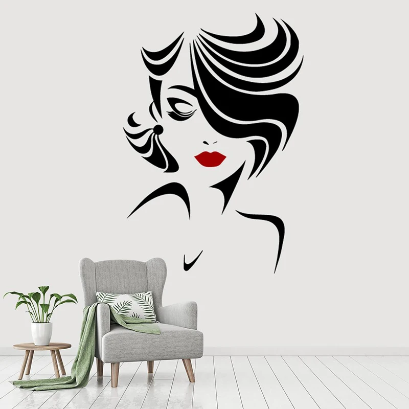 Волосы салонная Наклейка на стену Мода девушка парикмахерский салон...