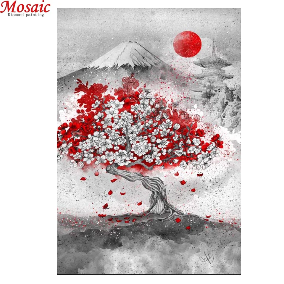 Алмазная живопись «сделай сам», гора Фуджи вишня Бриллиантовая мозаика дерево, пейзаж, вышивка крестиком, алмазная вышивка, стразы, Декор для дома