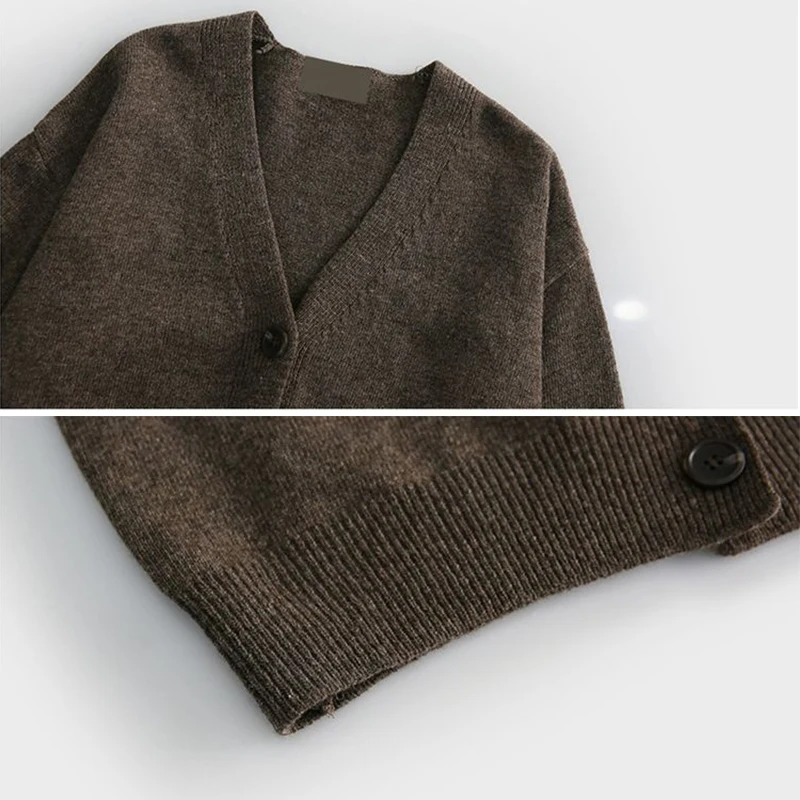 Женский вязаный кардиган с V-образным вырезом, свободного покроя