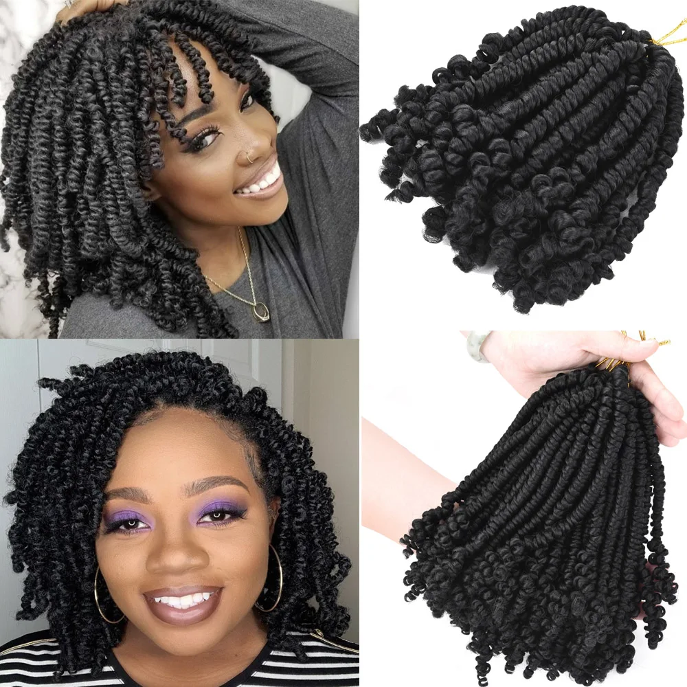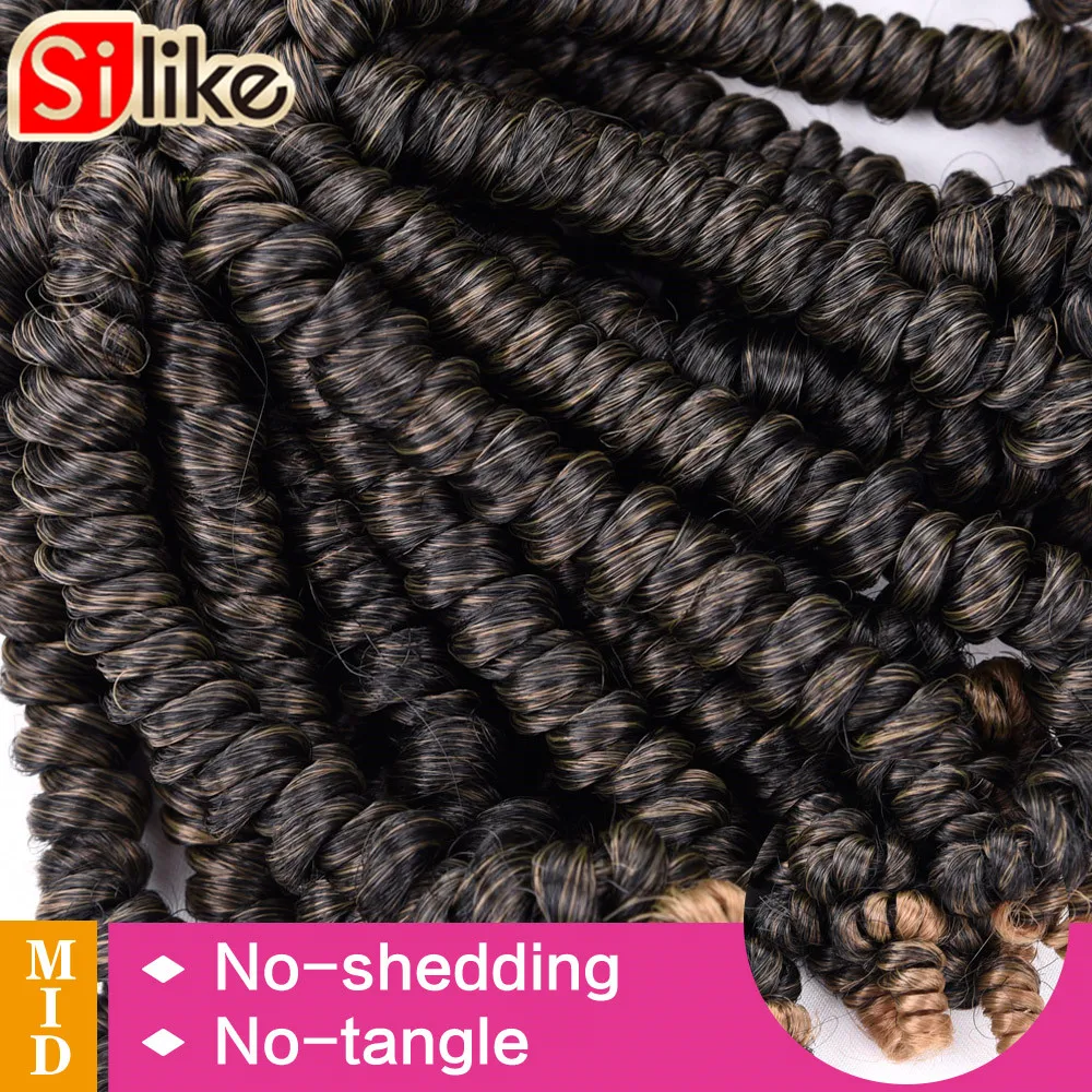 Silike 8 дюймов Омбре Пружинные плетеные волосы Вязание крючком страстные Твист Синтетические плетеные волосы удлинители 30 корней черный коричневый цвет