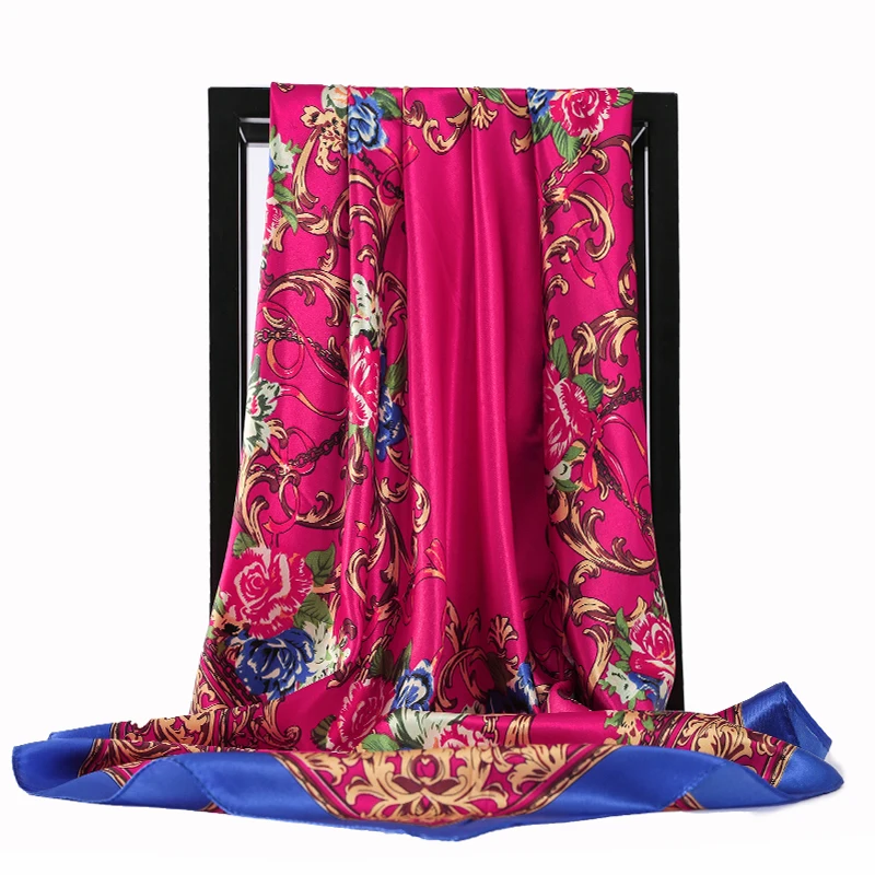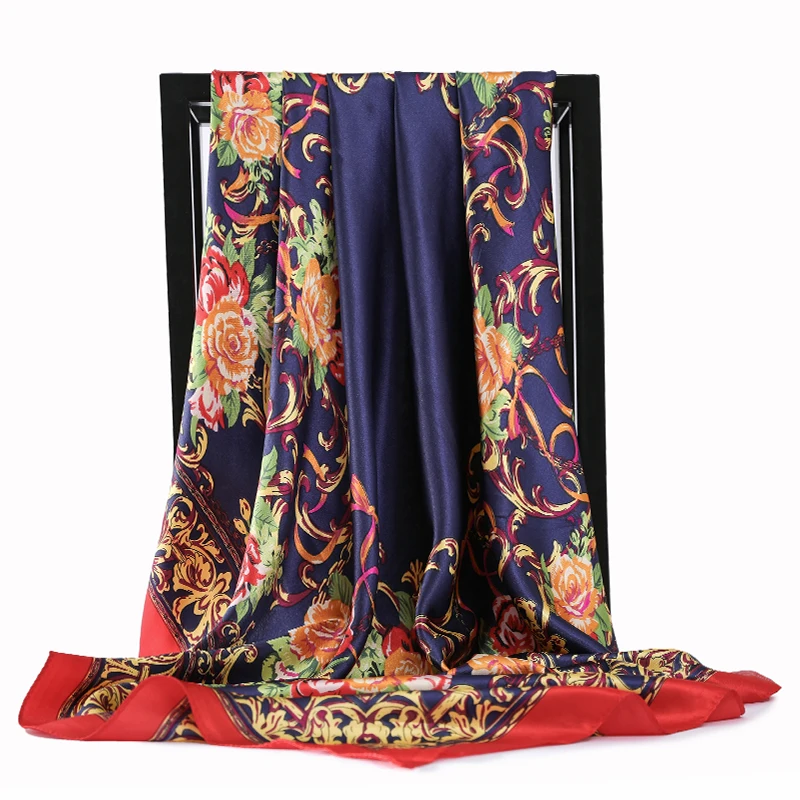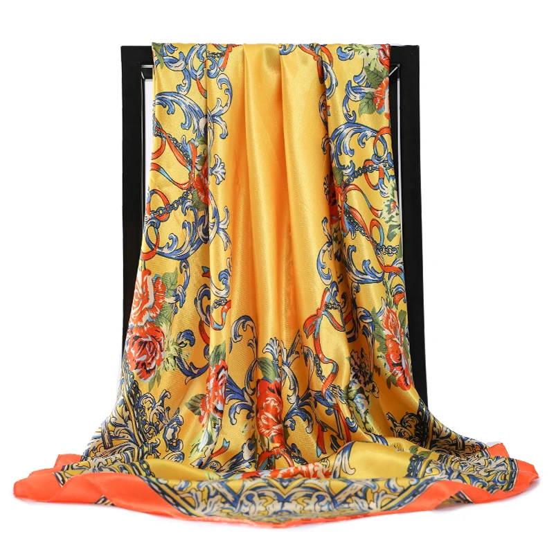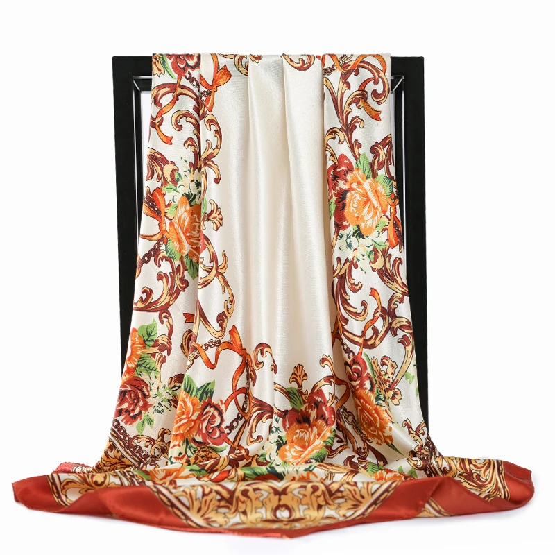 Женский шейный платок, модный Шелковый сатиновый хиджаб с цветочным принтом, 90*90 см, квадратный ободок, 2020