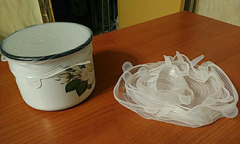 Максимальная скорость доставки.Крышка хорошо держится на посуде,отлично фиксируется, легко моется.Если хотите получить полное удовлетворение и сэкономить на плёнке, то заказывайте товар.