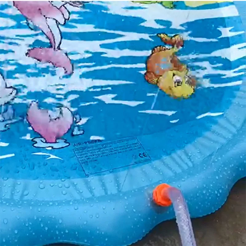 Изготовлен из высококачественного ПВХ-материала, без запаха, нетоксичный, экологически чистый и водонепроницаемый.-Надувной игровой коврик, удобный для хранения и использования.-Дизайн с рисунком морских животных из мультфильма выглядит так мило и забавно и привлекает внимание ребенка.-Идеально подходит для отдыха вечерние или торжества на лужайке, саду, бассейне или пляже.-Центр брызговика быстро наполнится водой, создавая неглубокий бассейн, достаточно весело для детей или малышей, которые любят брызгать.-Все, что вам нужно сделать, это подключить этот клапан забора воды к садовому шлангу-Пожалуйста, обратите внимание на регулировку давления воды, чтобы уменьшить или увеличить высоту распыления, чтобы добиться эффекта на картинке -Название товара: игровой коврик с дождевателем-Материал: ПВХ-Подходит для людей: детей-Случаи: пляж, лужайка, бассейн и т. д.-Особенности: рисунок морских животных из мультфильма, надувной, экологически чистый-Диаметр после надувания: 100 см/39,37 дюйма, 170 см/66,93 дюйма (прибл.)-Высота после надувания: 2,1 см/0,83 дюйма (прибл.)