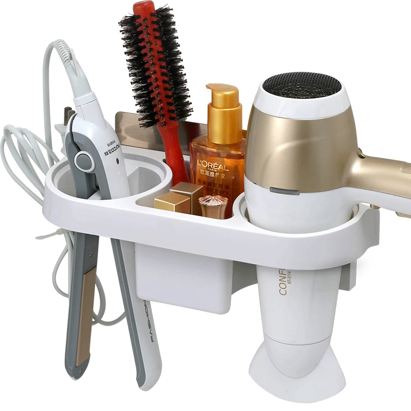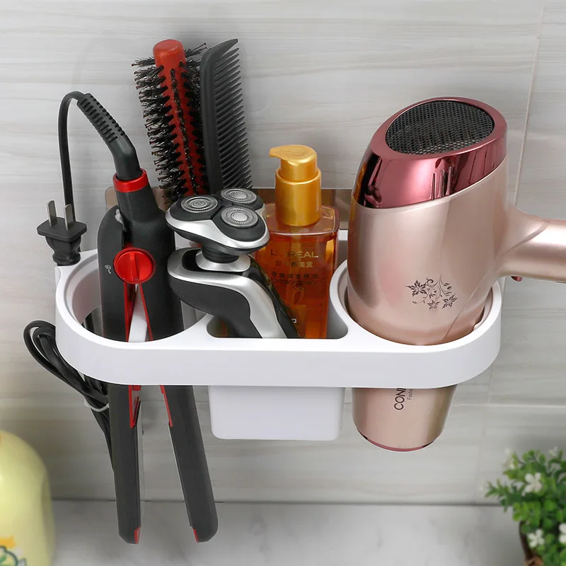 Многофункциональный держатель для сушки волос MJ81104, настенный пластиковый органайзер для ванной комнаты, самоклеящийся, для хранения шампуня