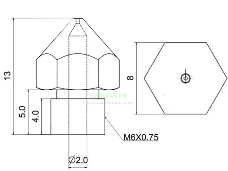 Il est indiqué buse de 0,2 mm mais en réalité elle est de 0,3mm. Le filetage est de mauvaise qualité.